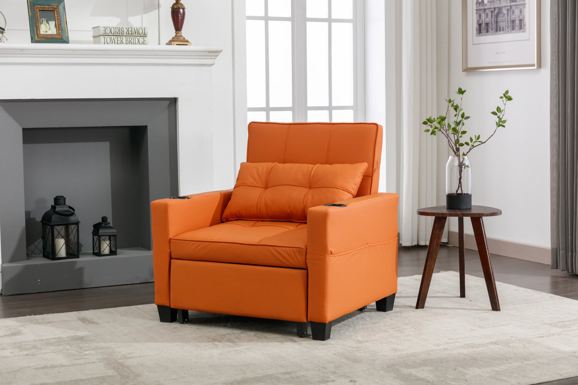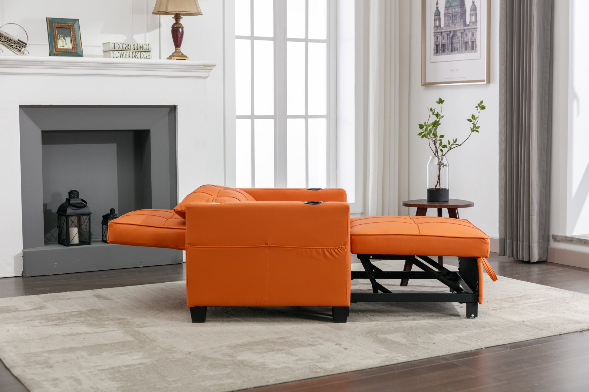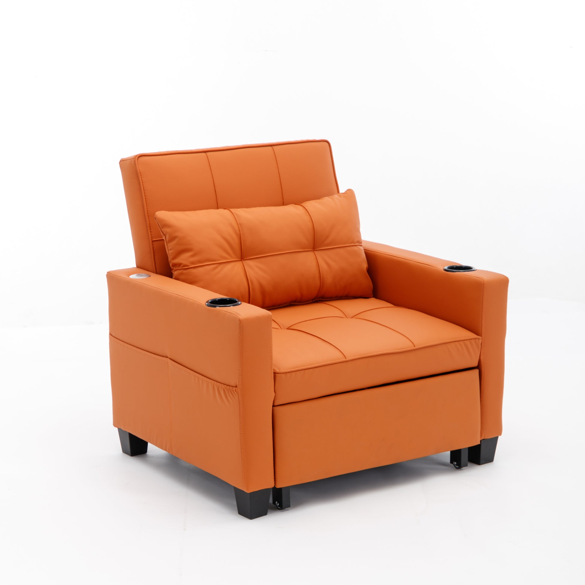 Futon Chair Bed Convertible Chair 3 In 1 Pull Out Sleeper Chair Beds With Usb Ports,Wear Resistant And Anti Scratch, Armchair Bed Sleeper For Living Room Orange Leather Orange Foam Leather 1 Seat
