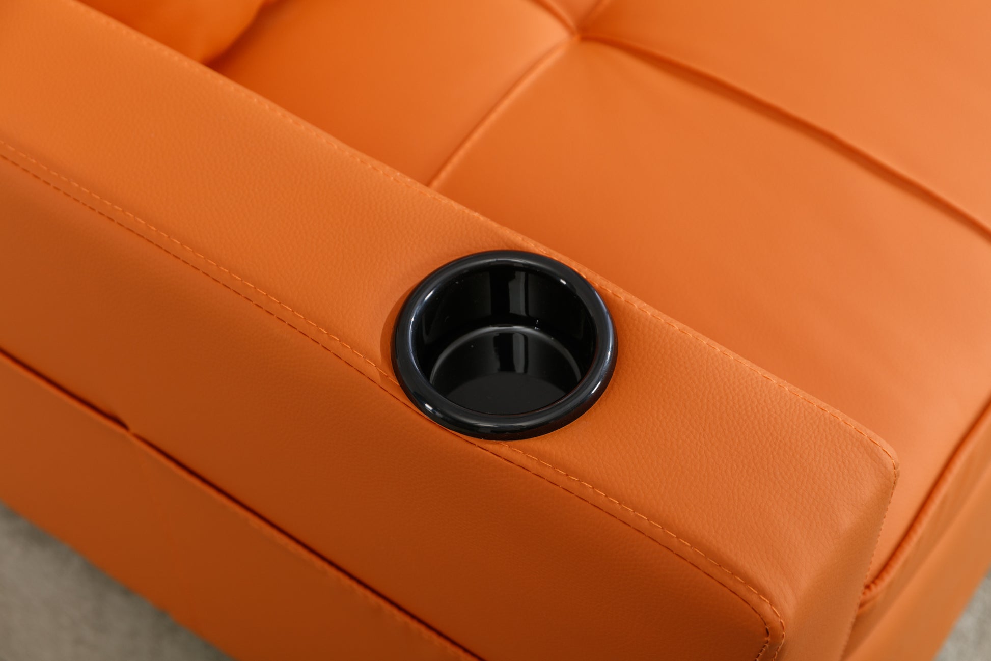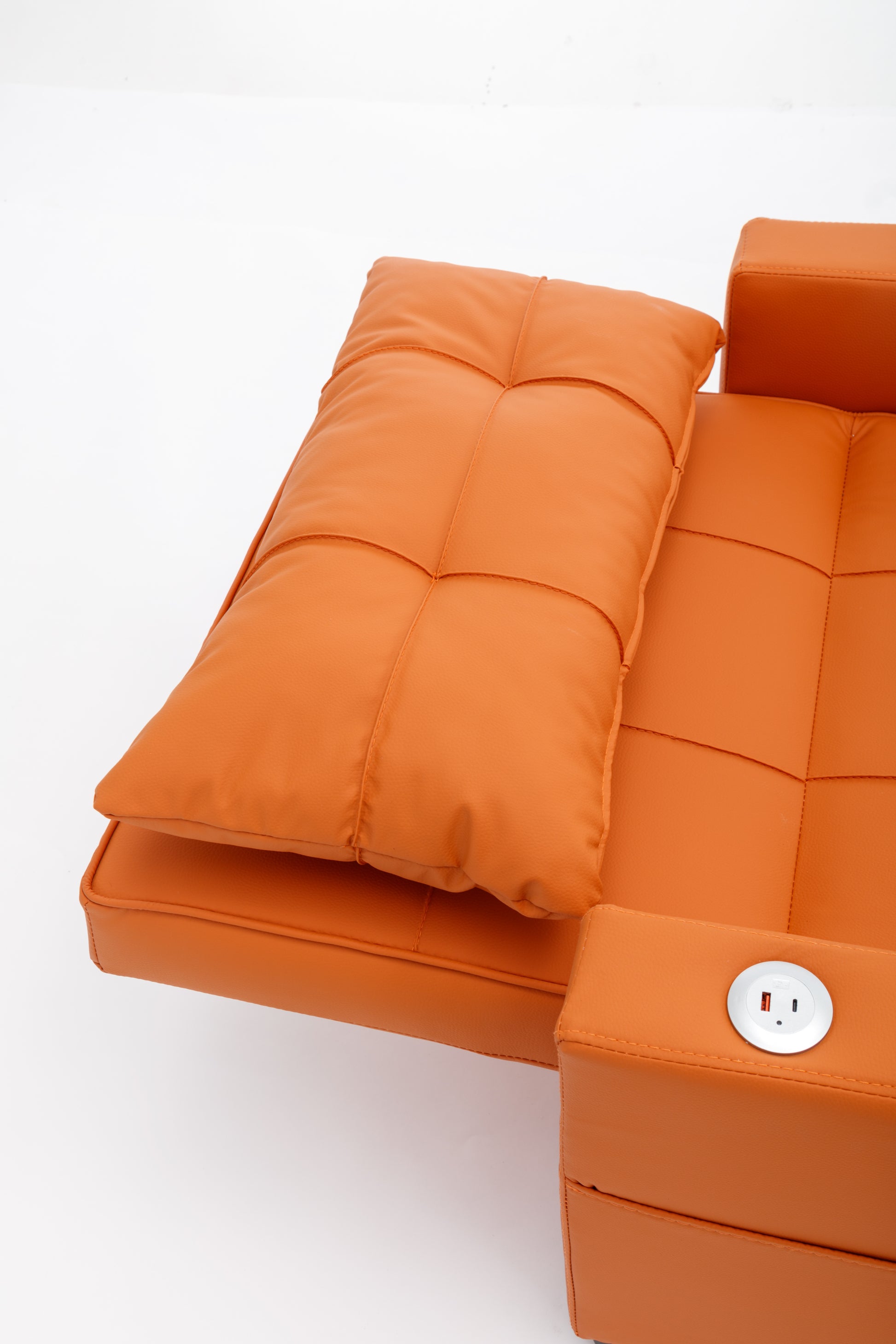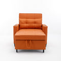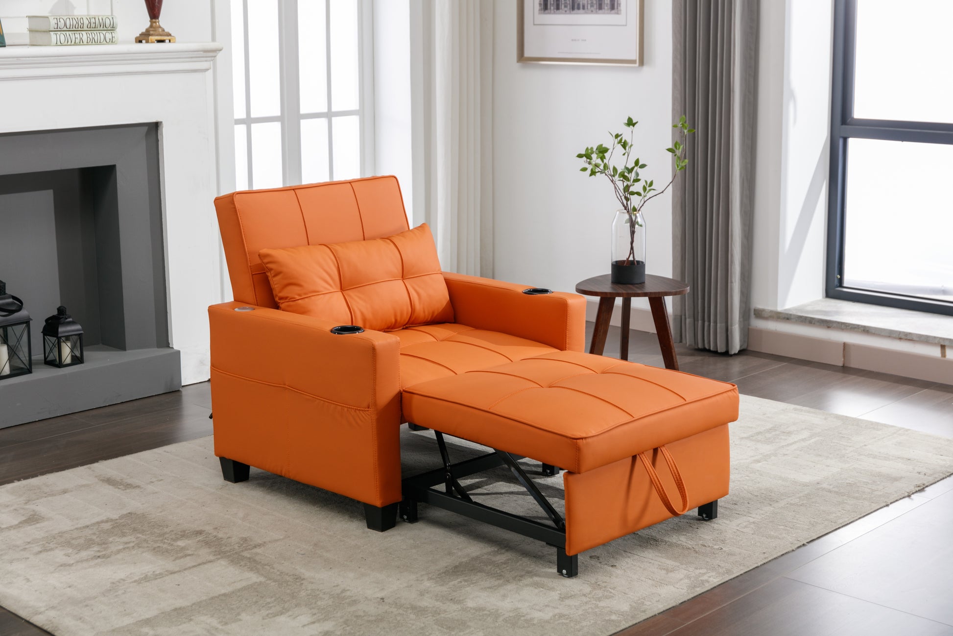 Futon Chair Bed Convertible Chair 3 In 1 Pull Out Sleeper Chair Beds With Usb Ports,Wear Resistant And Anti Scratch, Armchair Bed Sleeper For Living Room Orange Leather Orange Foam Leather 1 Seat