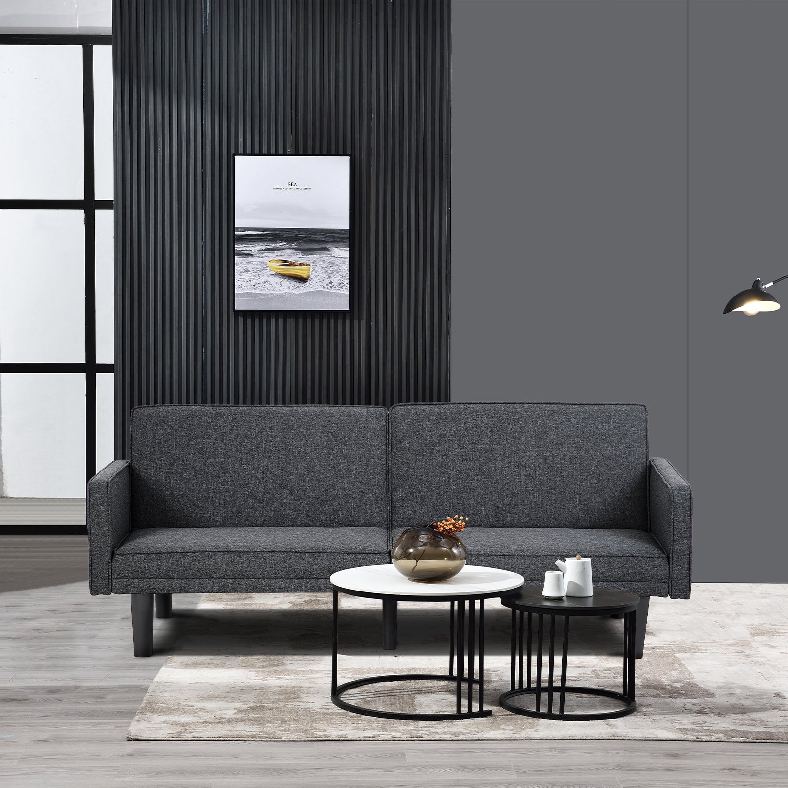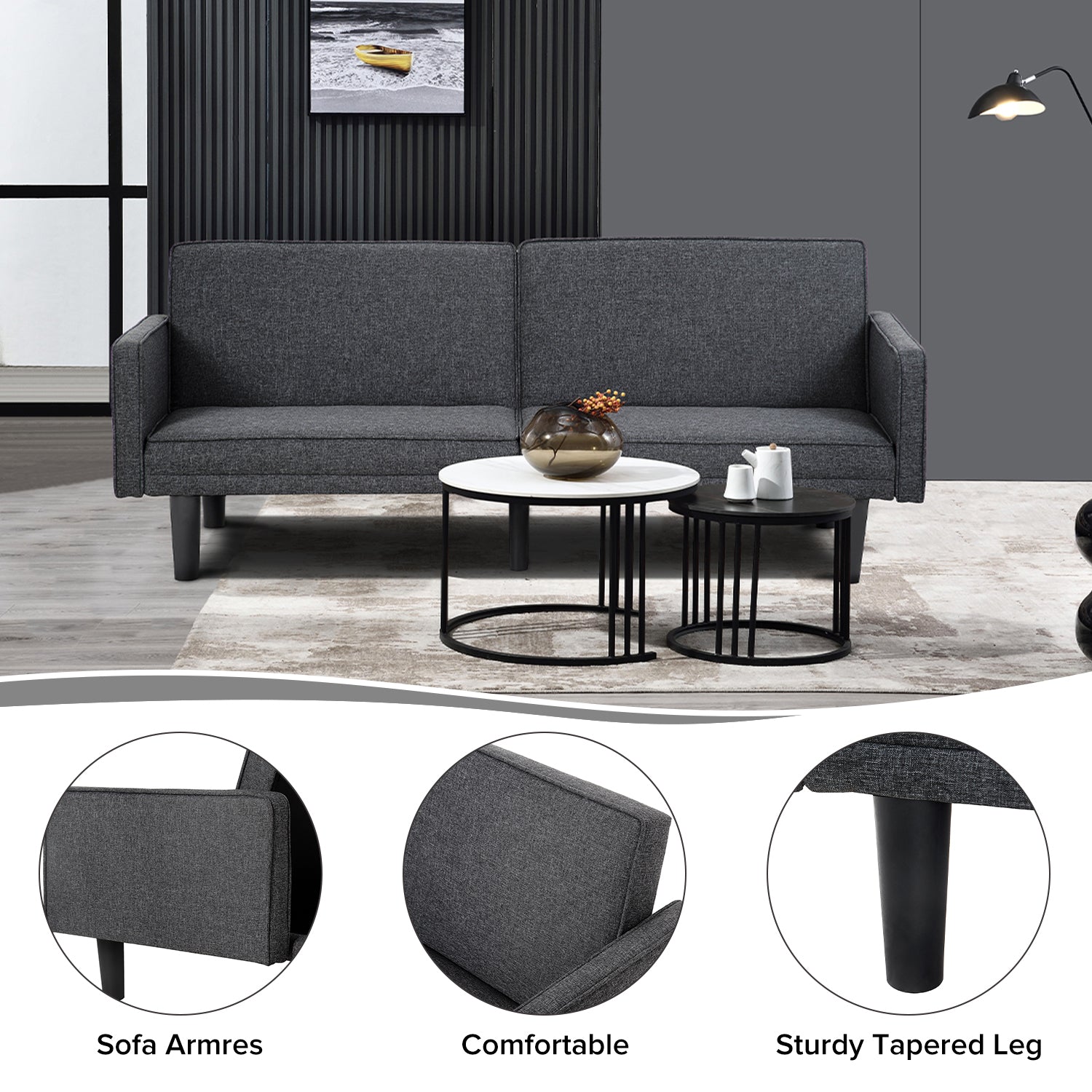 Futon Sofa Bed Convertible Sectional Sleeper Couch, Loveseat Bed With Tapered Legs For Living Room, Study, Dorm, Office Black Burlap 2 Seat