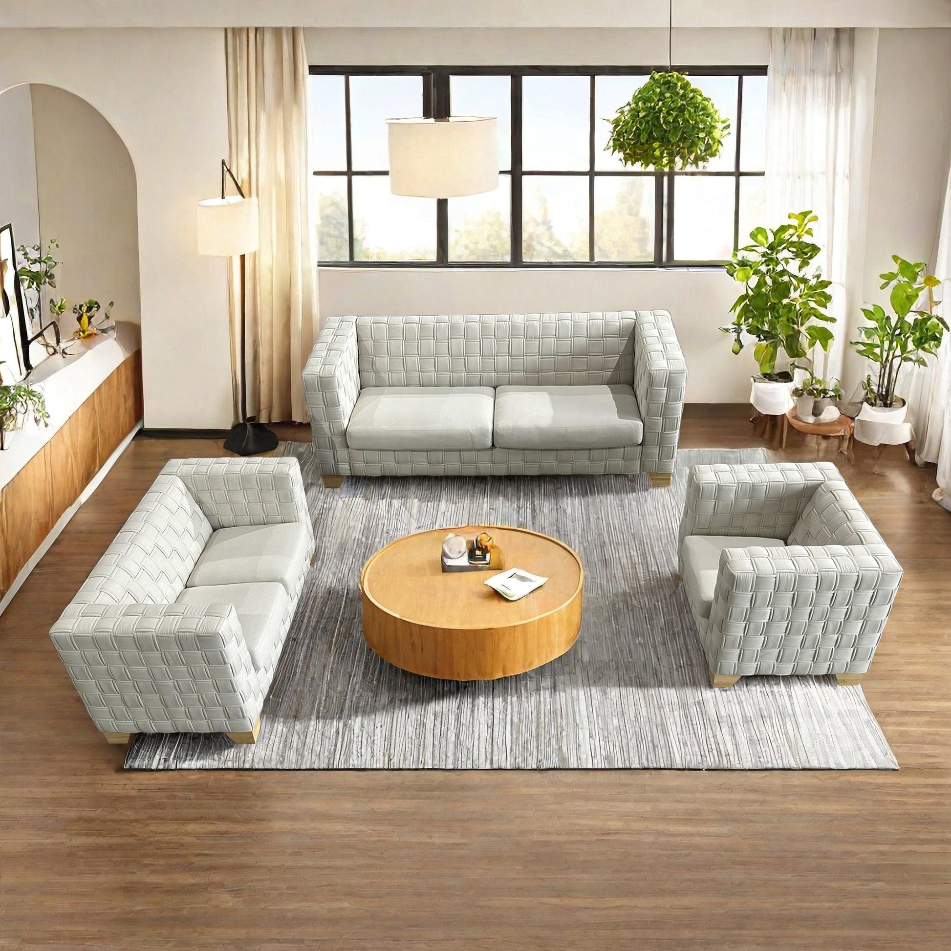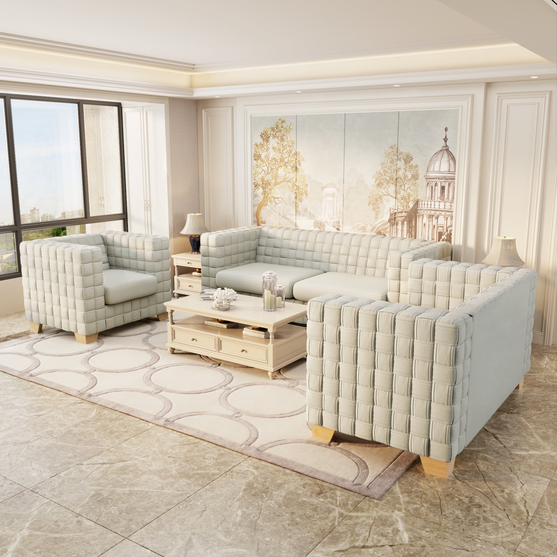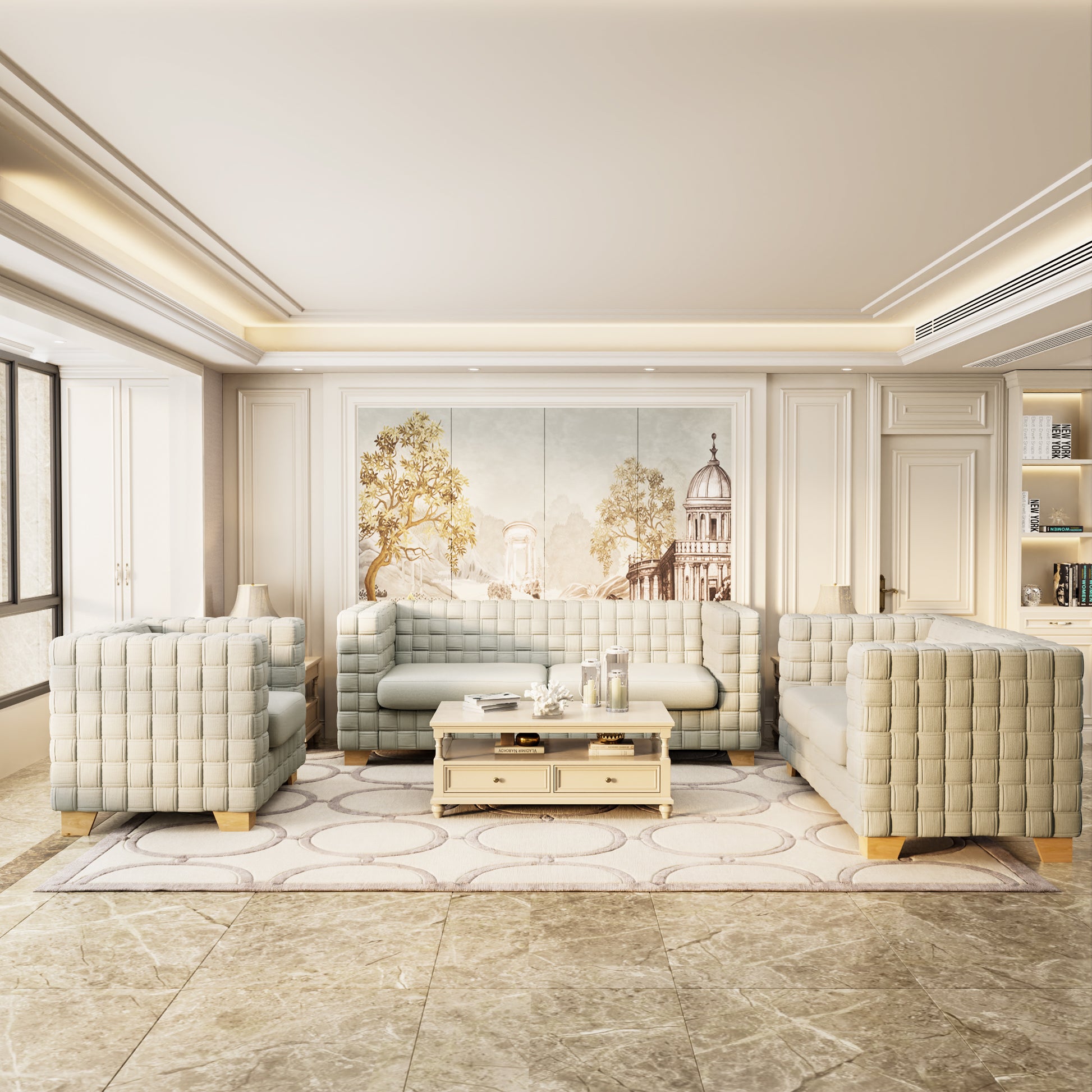 Fx D1 Sofa Set Include Chair Loveseat And Sofa Light Beige Colorlinen & Oak Natural Wood Color Sofa Legs Light Beige Fabric 6 Seat