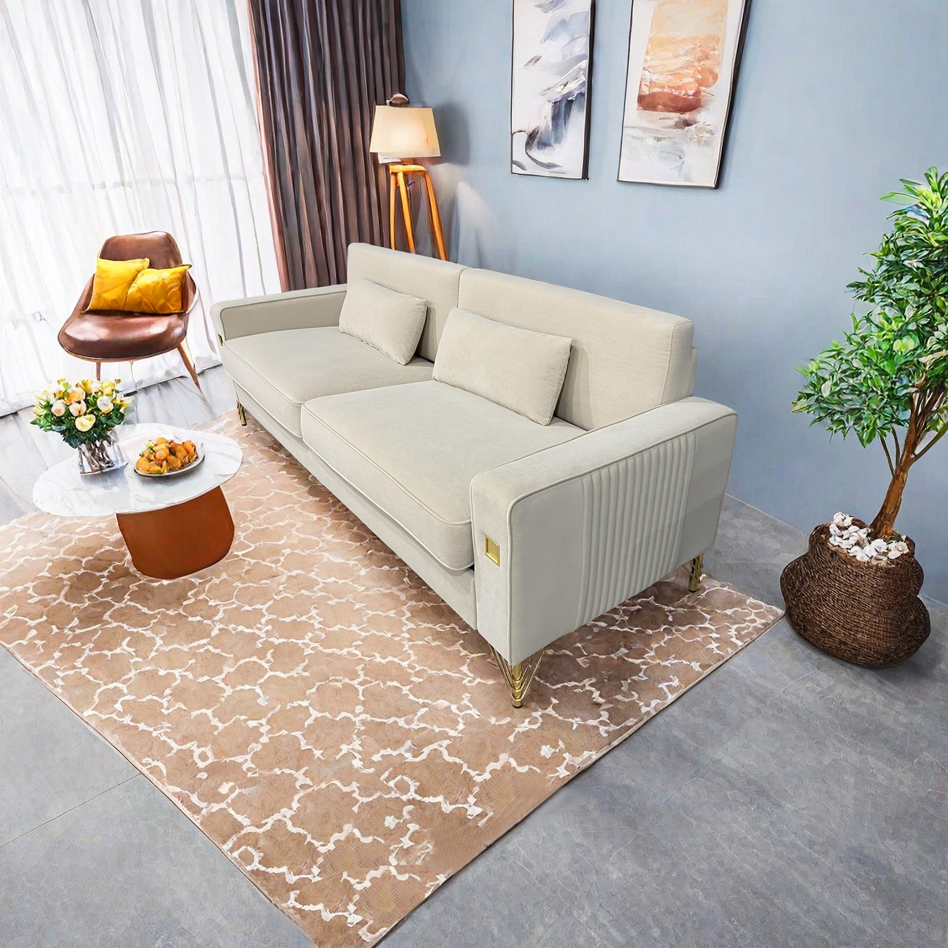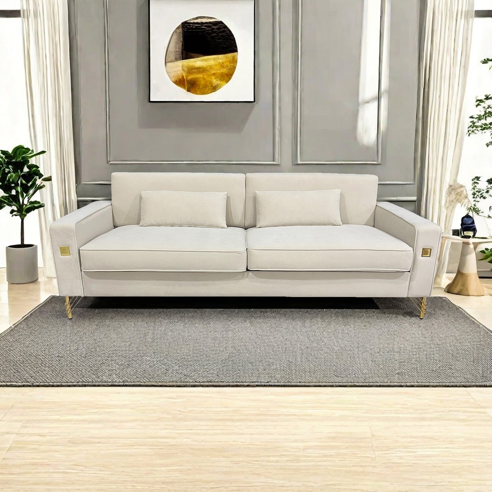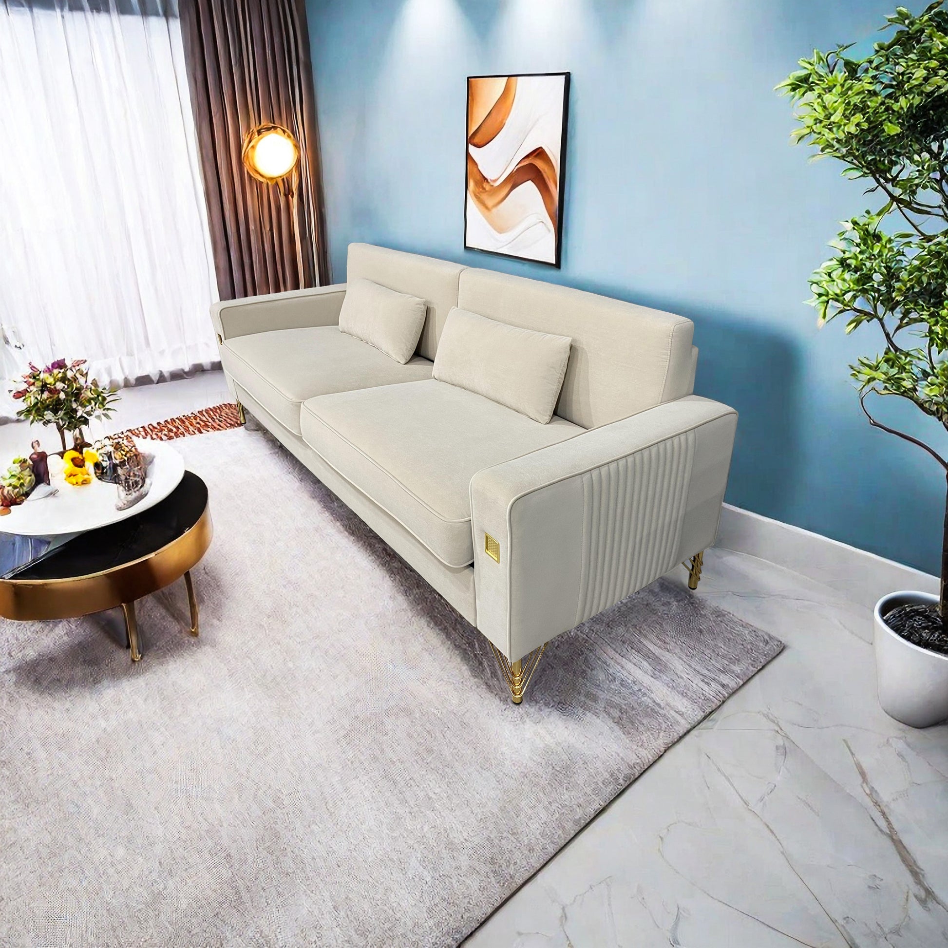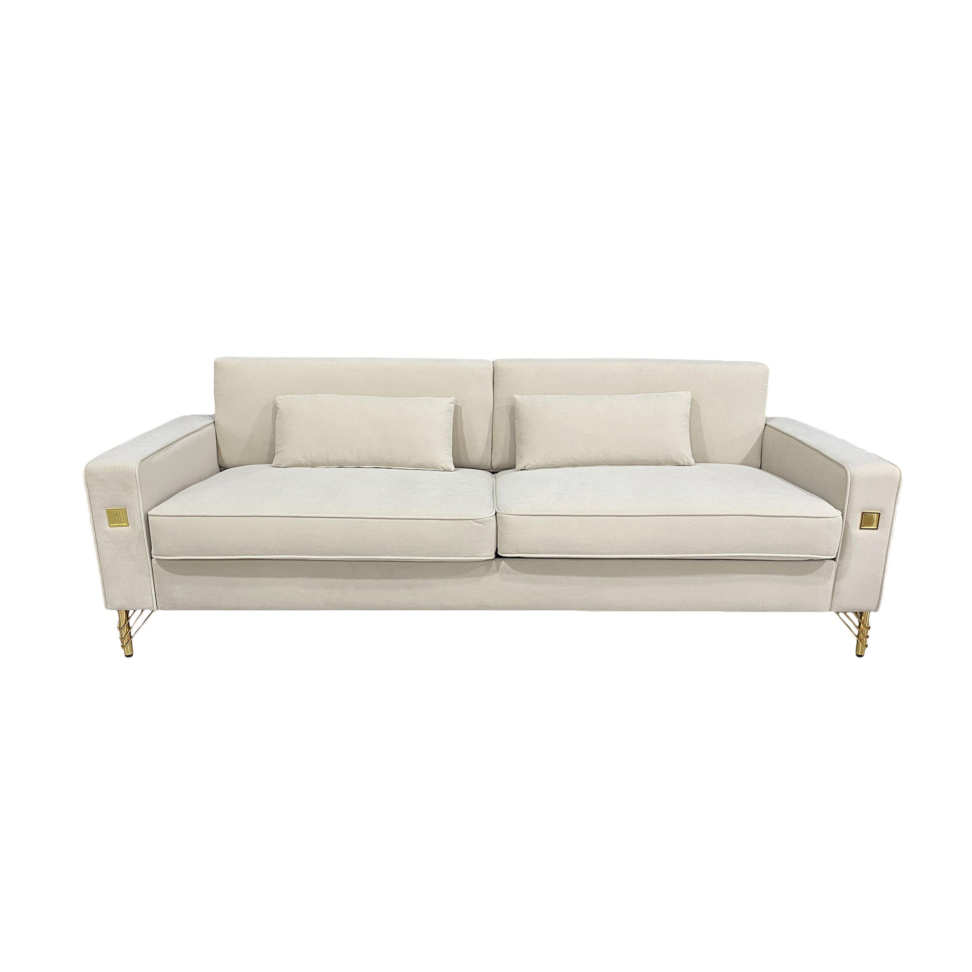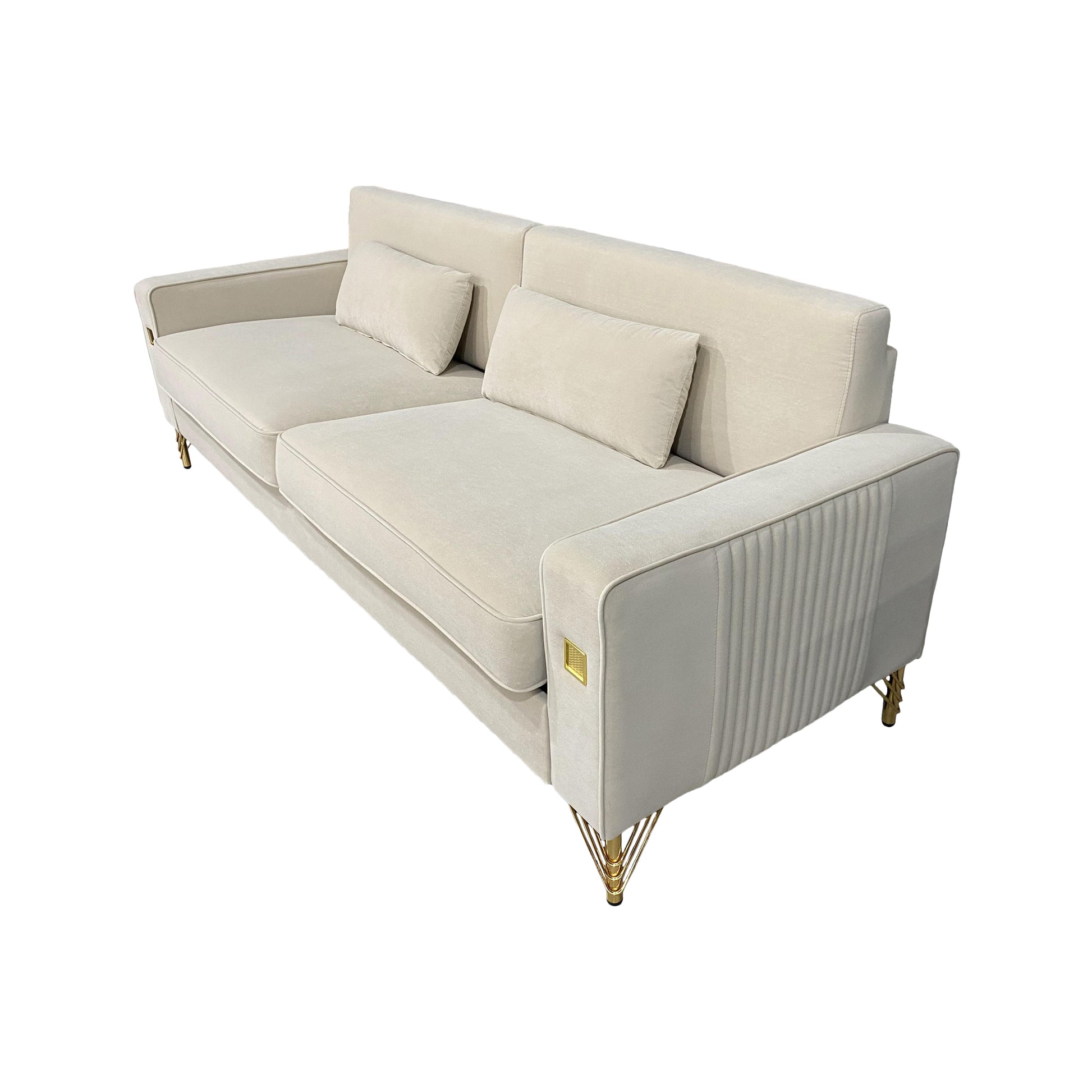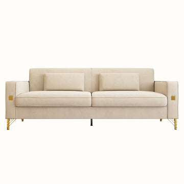 Fx P18 Cw Sofa Luxury Velvet Sofa With Gold Accents Modern 3 Seat Couch With Plush Cushions, Perfect For Living Room And Office Decor Cream White Velvet 2 Seat