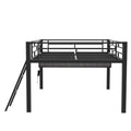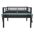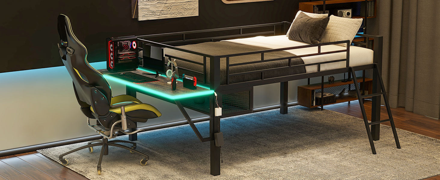 Gaming Mid Loft Bed With Desk, Led, Full, Black Full Black Mdf Metal