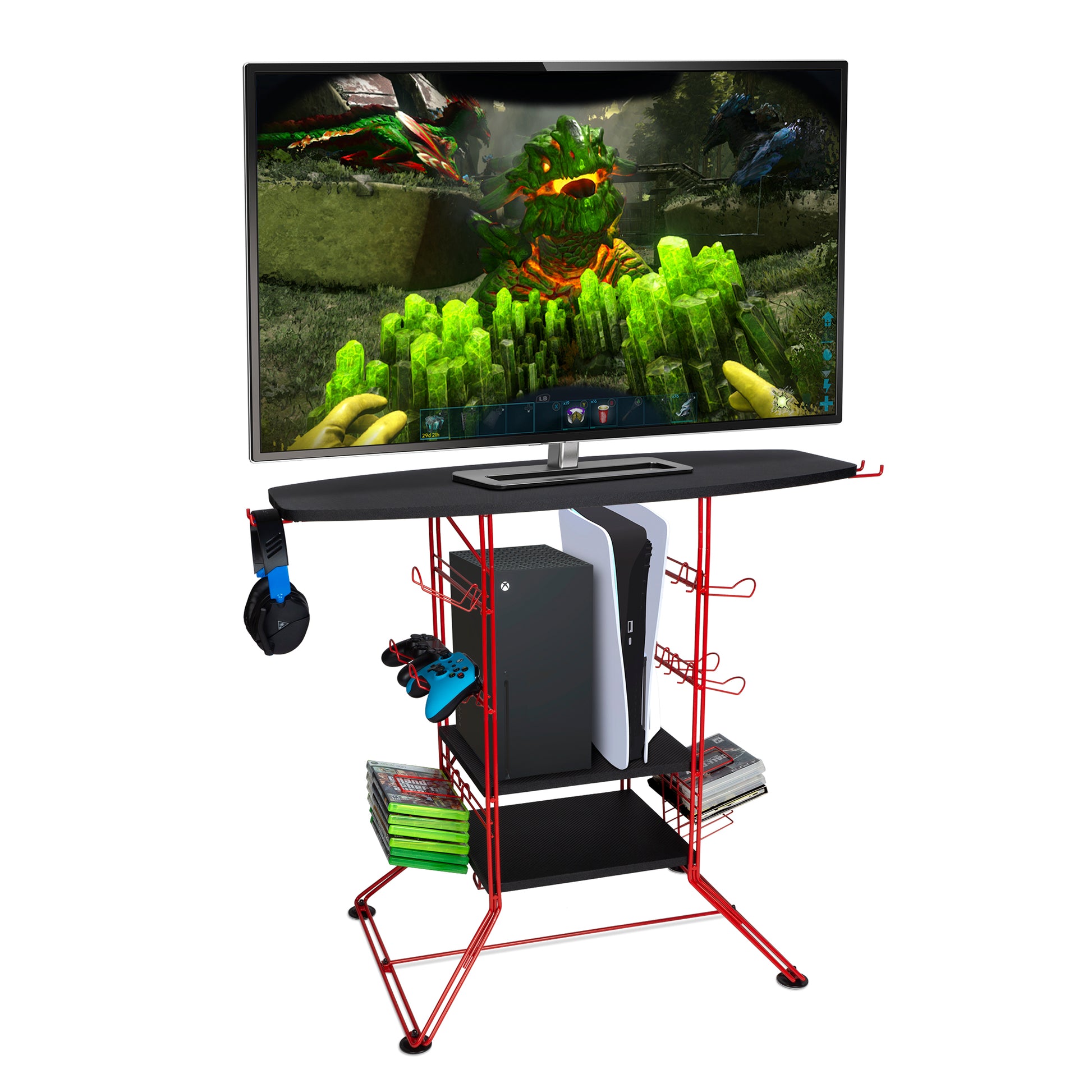 Gaming Storage Stand With 2 Fixed Carbon Laminate Shelves In Black And Red Red 39 Inches Or Less Particle Board