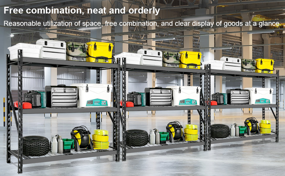 Garage Shelving Heavy Duty 72"H*77"W Garage Storage Shelves 6000Lbs Heavy Duty Shelving Adjustable 3 Tier Metal Shelving For Garage Storage Shelving Industrial Shelving Storage Rack, Black Black Iron