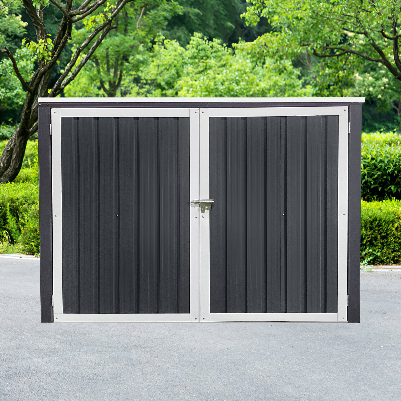 Garbage Bin Shed Stores 2 Trash Cans Metal Outdoor Bin Shed For Garbage Storage,Grey Grey Metal