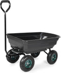 Garden Dump Cart With Steel Frame, Heavy Duty Outdoor Wagon With 10 Inch Pneumatic Rubber Tires, 660Lbs Max Capacity, Black Black Polypropylene
