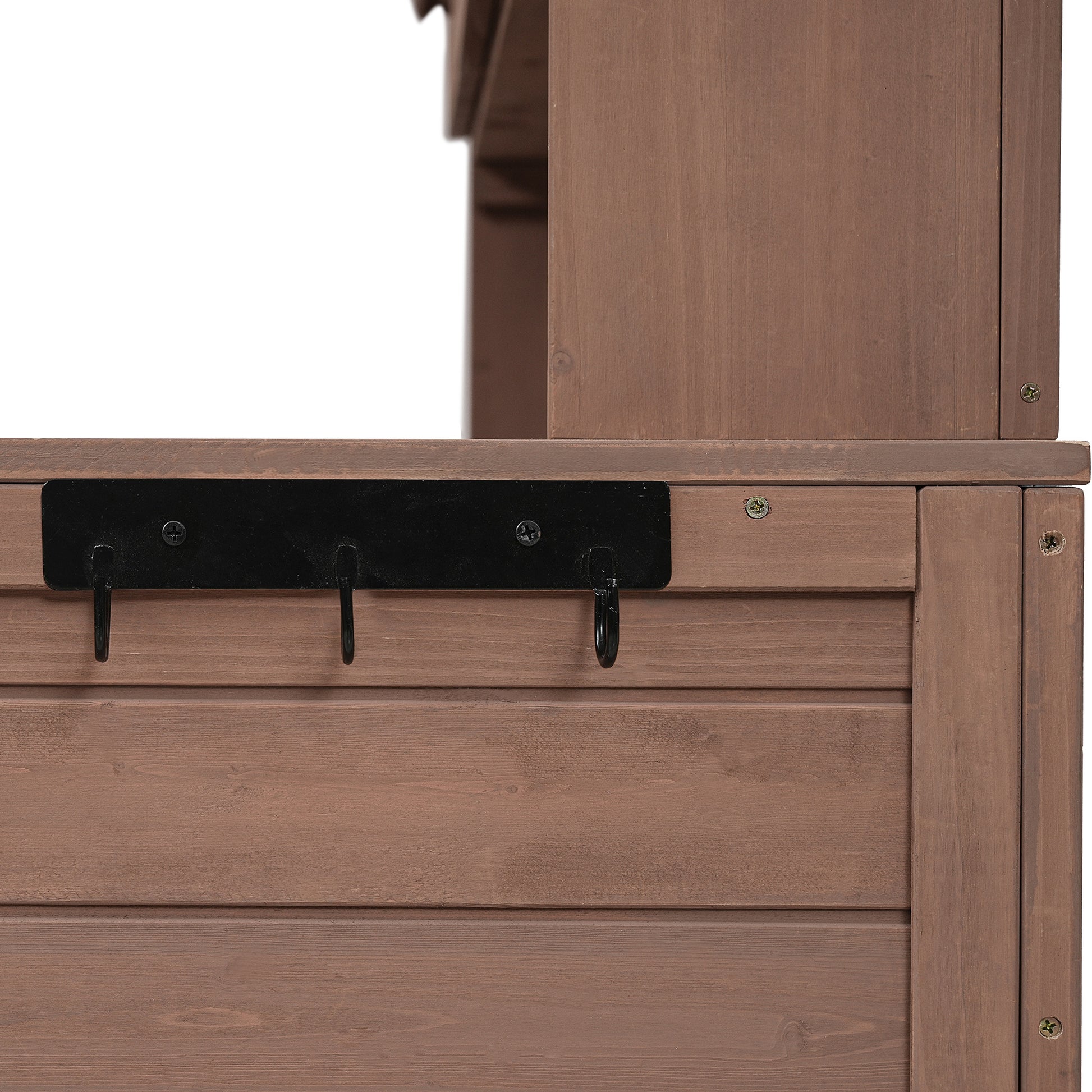 | Summary | We present to you our exquisite and functional potting bench, a showcase of rustic design and storage brilliance. With drawers and shelves, you can arrange your plantings, flowers or other gardening items according to your aesthetics, ensuring a and organized space. This table also features a convenient hook on the left, perfect for hanging spades, watering cans or others. Maximize your storage potentials while also saving valuable floor space in your home. |