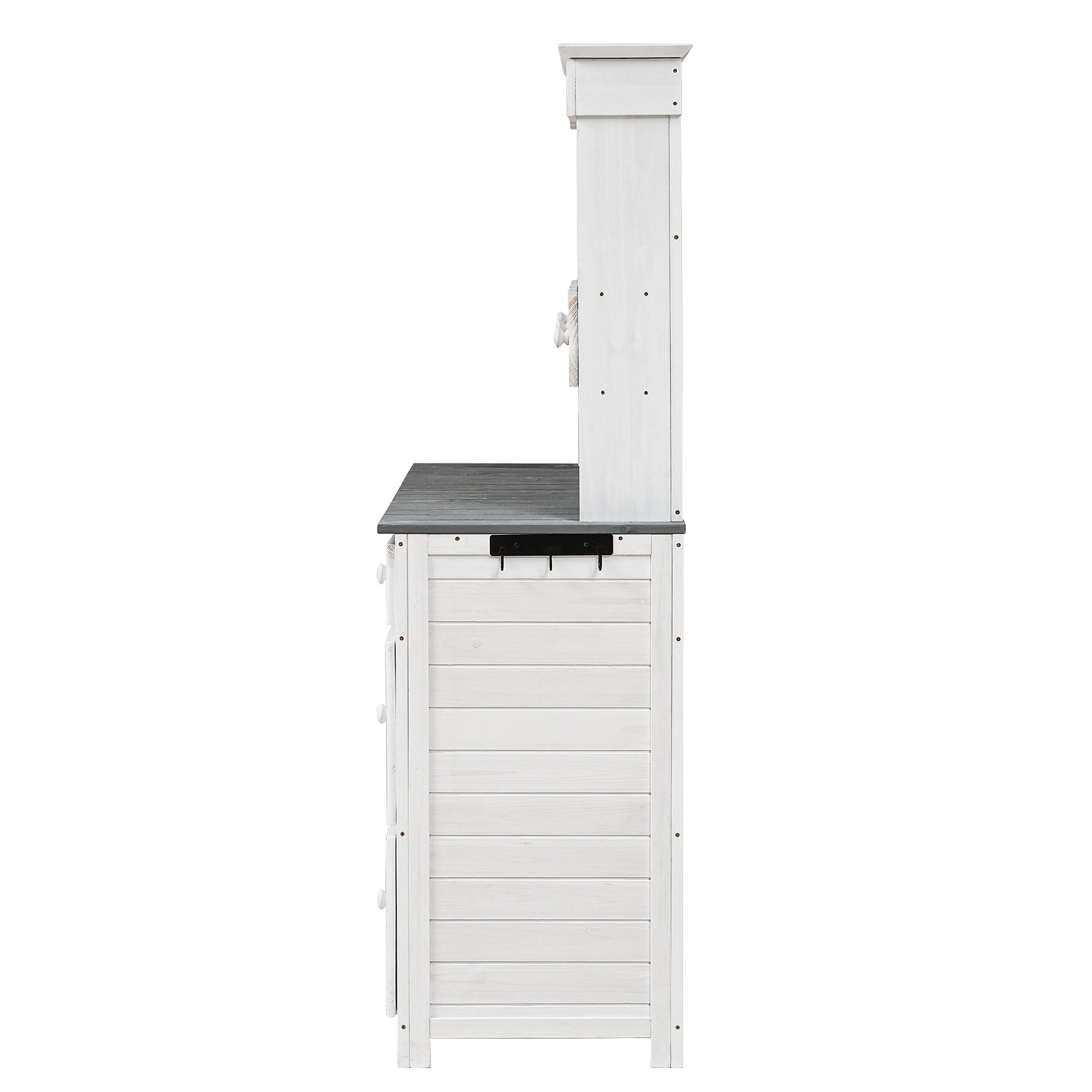 Garden Potting Bench Table, Rustic And Sleek Design With Multiple Drawers And Shelves For Storage, White And Gray White Gray Garden & Outdoor Rustic Wood