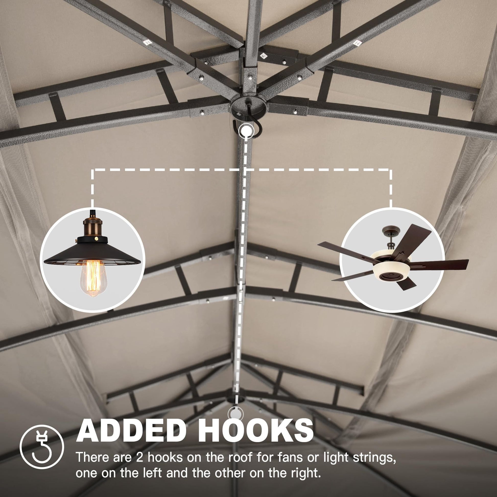 Gazebo 10X14Ft, Outdoor Gazebo With Double Roofs, Privacy Curtains, Mosquito Nettings, Heavy Duty Metal Frame Party Tent Canopy For Patio, Backyard, Deck, Lawn, Grey Gray Garden & Outdoor Steel