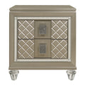 Glamorous Champagne Finish 1Pc Nightstand Of 2 Drawers Acrylic Feet Bedside Table Luxury Bedroom Furniture Beveled Mirror Trim Champagne 2 Drawers Bedroom Bedside Cabinet Wood