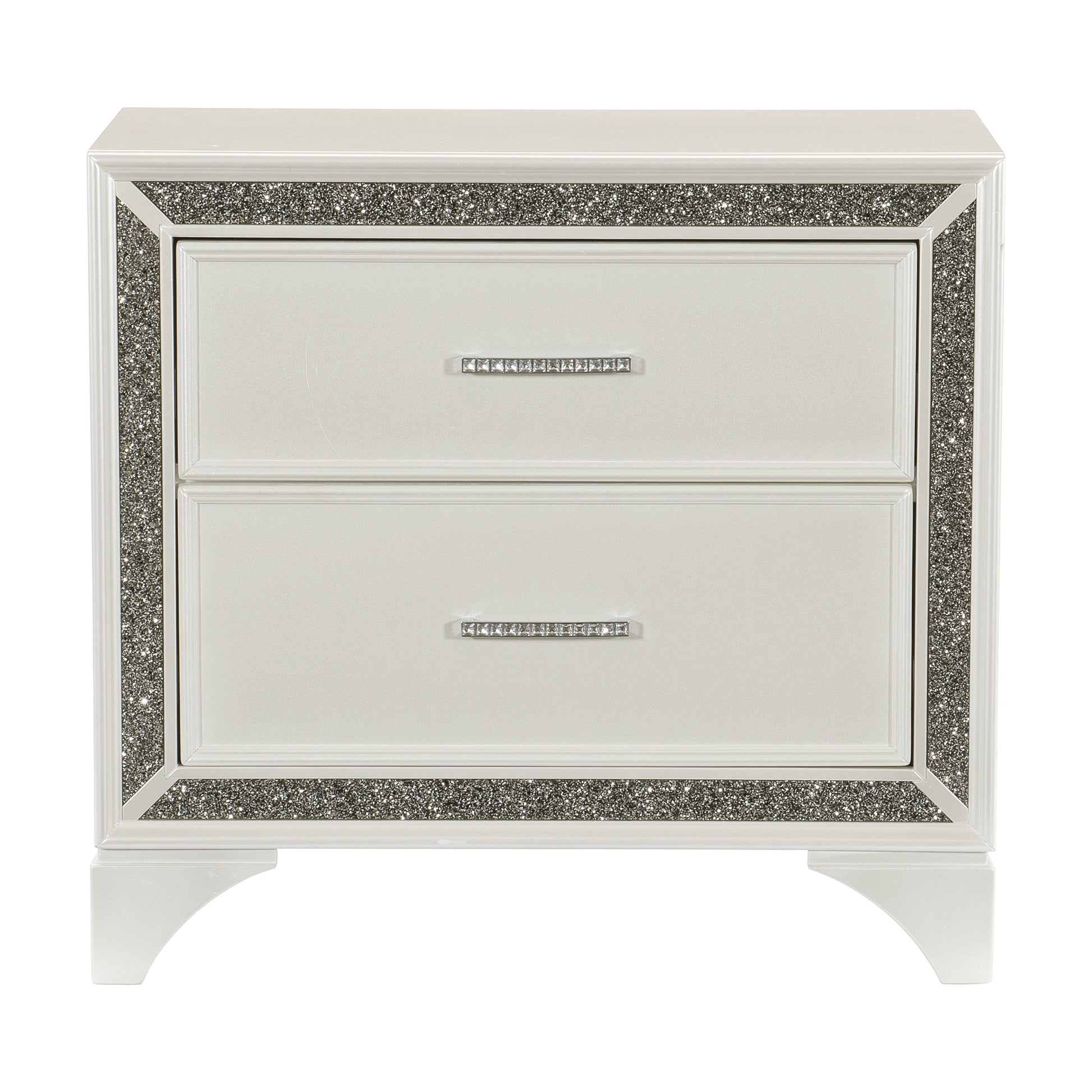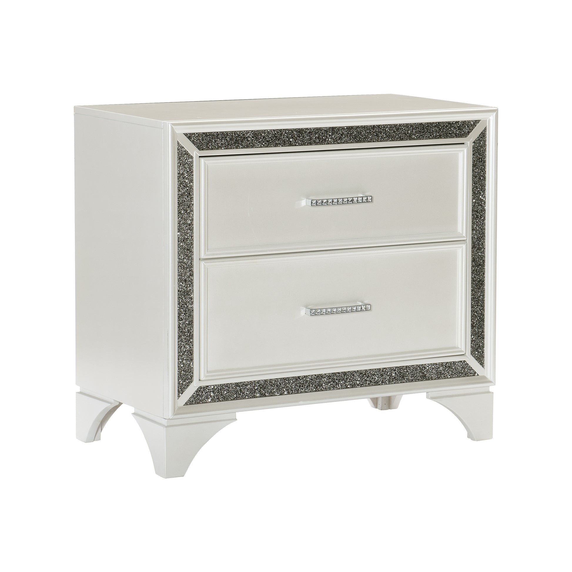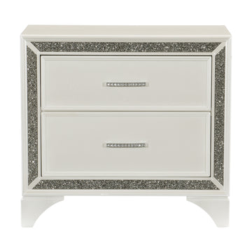 Glamourous Bedroom 1Pc Nightstand Pearl White Metallic Finish Silver Glitter Trim Wooden Furniture White 2 Drawers Bedroom Glam,Modern Wood