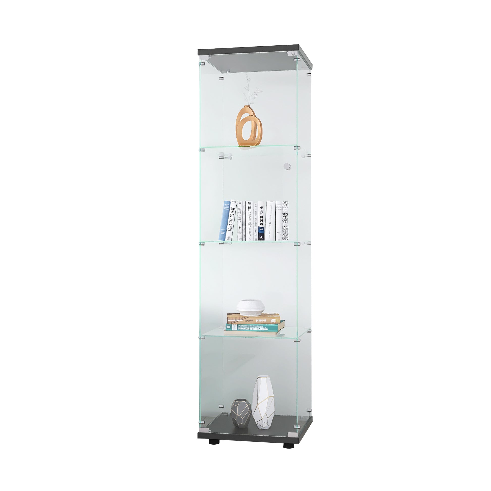 Glass Display Cabinet 4 Shelves With Door, Floor Standing Curio Bookshelf For Living Room Bedroom Office, 64.7"*16.7"*14.3", Black Black Glass