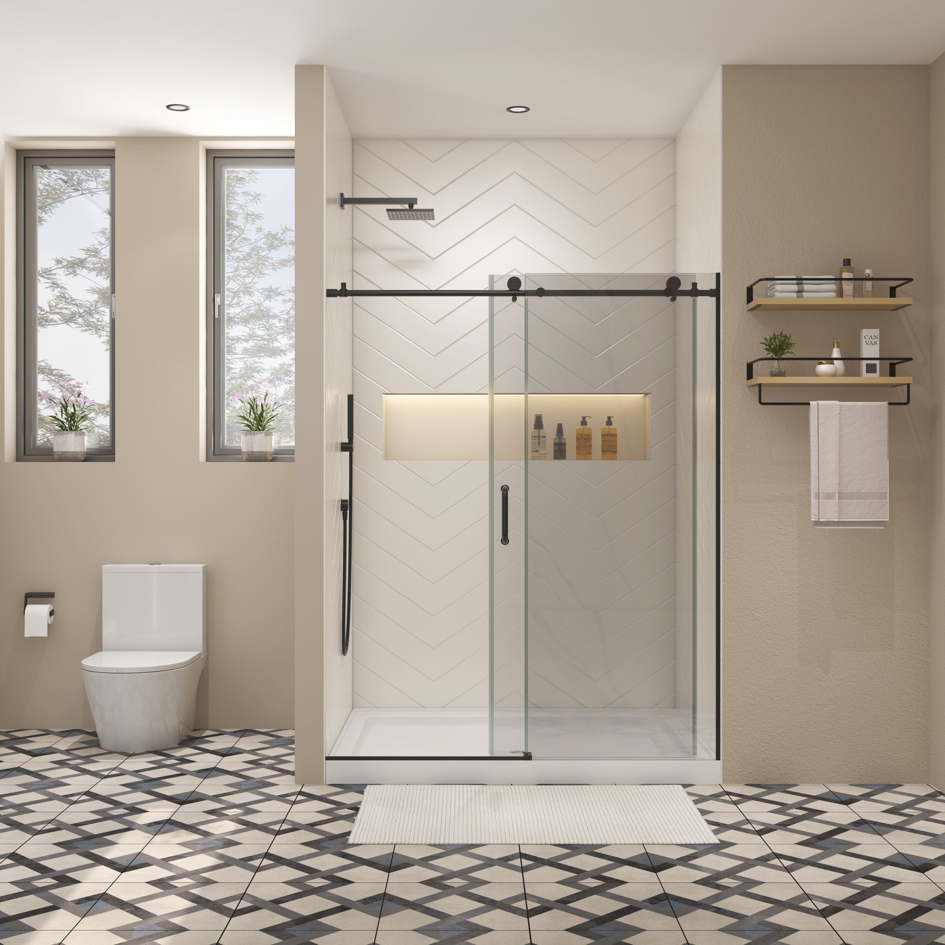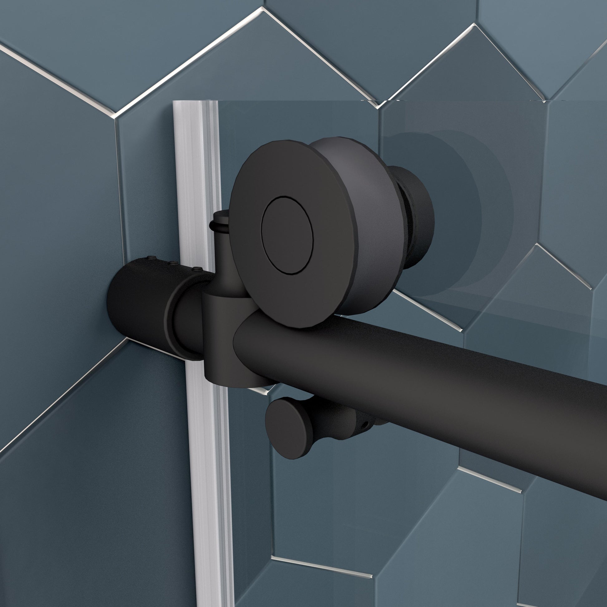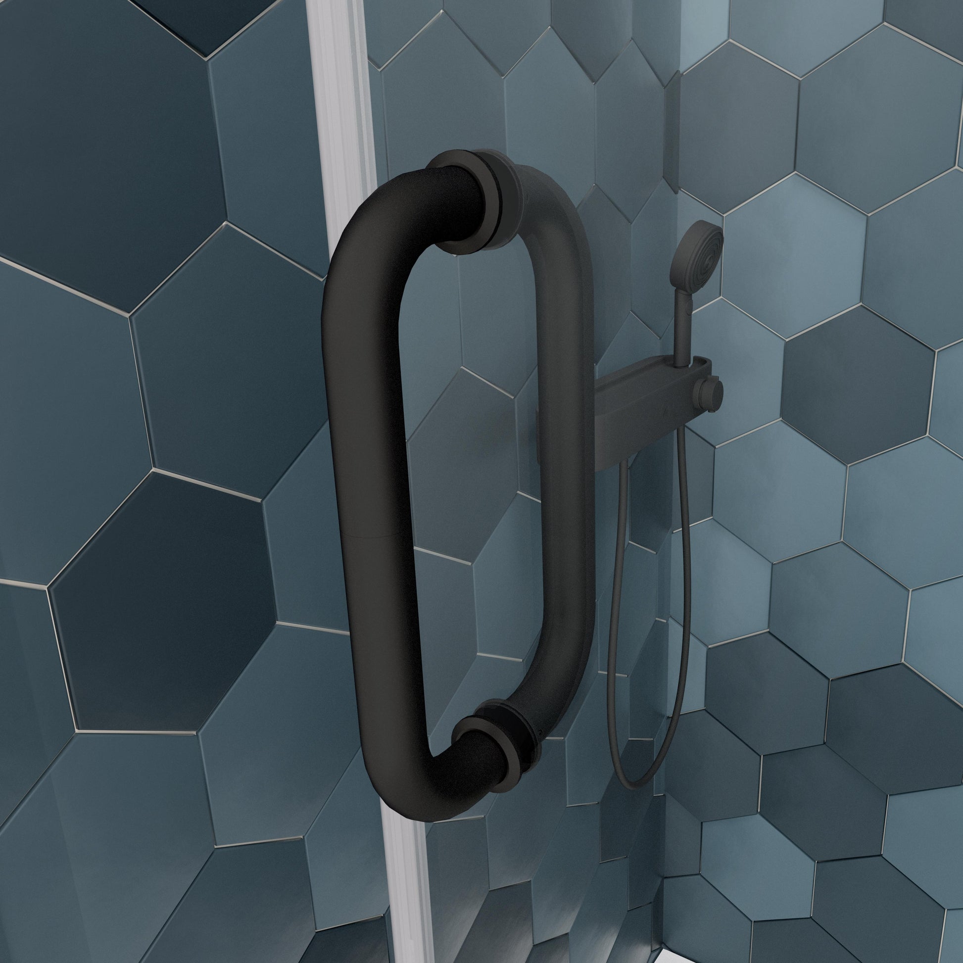 Glass Shower Door, Sliding Door, With 5 16" Tempered Glass And Matted Black Finish Matte Black Stainless Steel