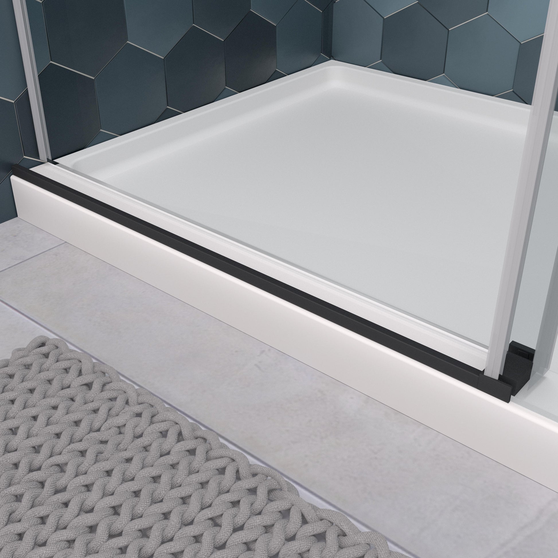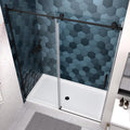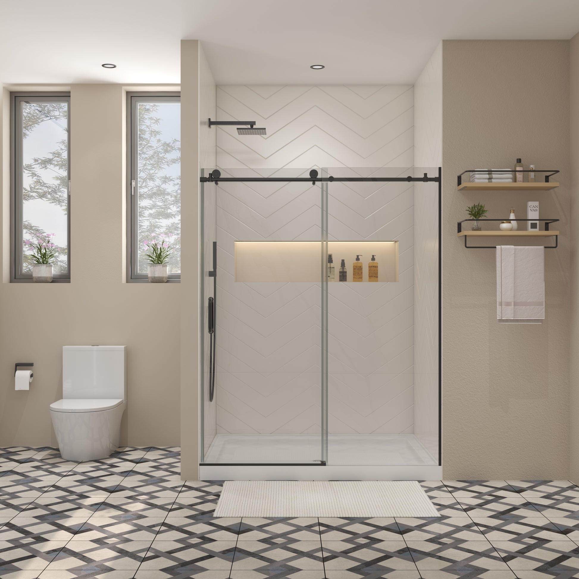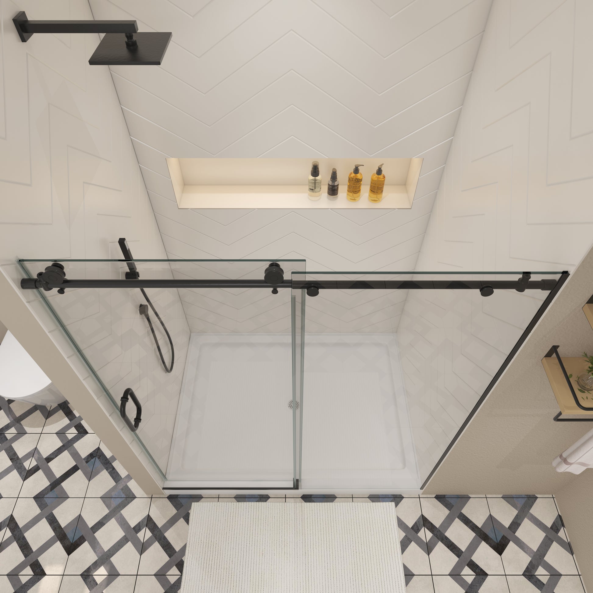 Glass Shower Door, Sliding Door, With 5 16" Tempered Glass And Matted Black Finish Matte Black Stainless Steel