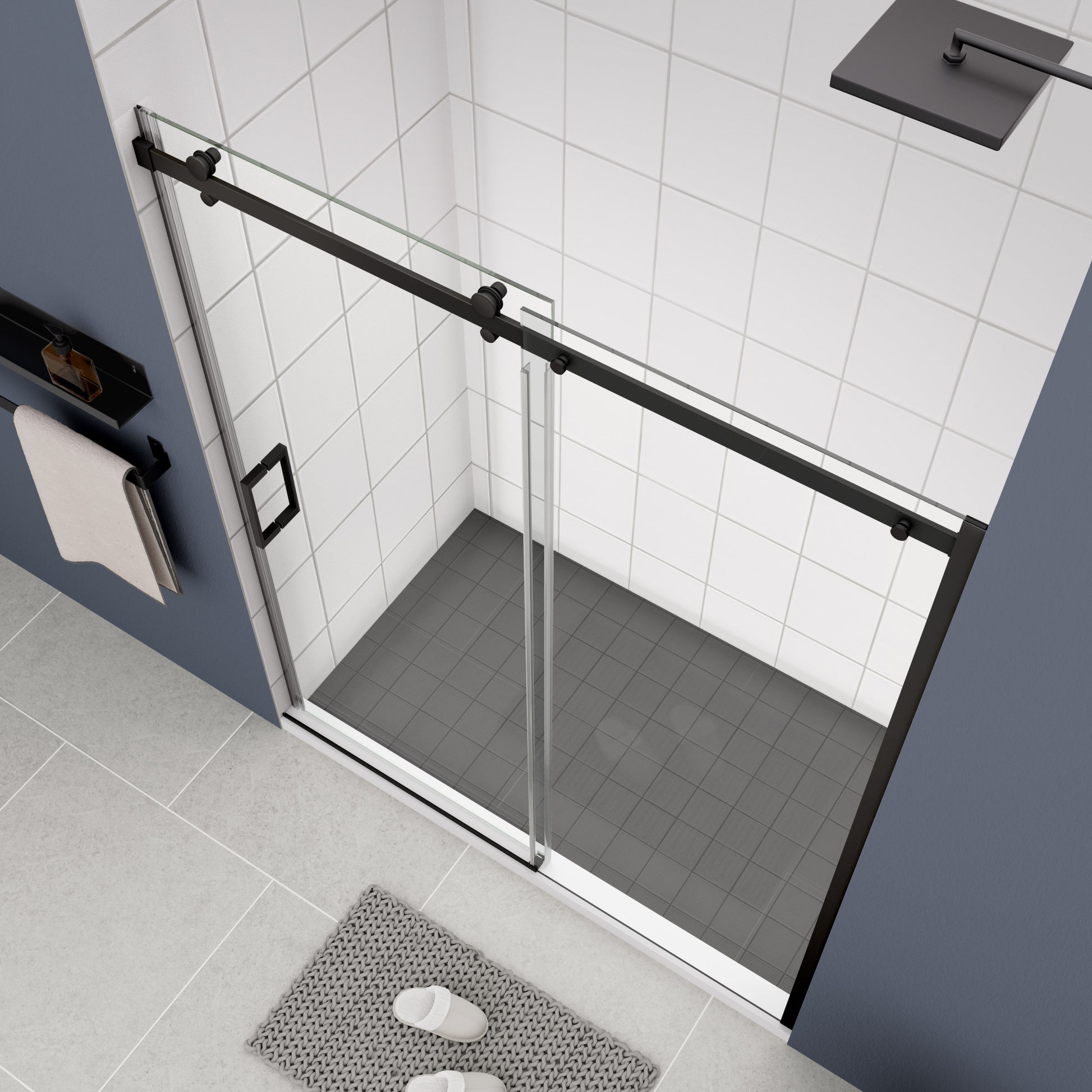 Glass Shower Door, Sliding Door, With 5 16" Tempered Glass And Matted Black Finish Matte Black Bathroom Aluminium Alloy