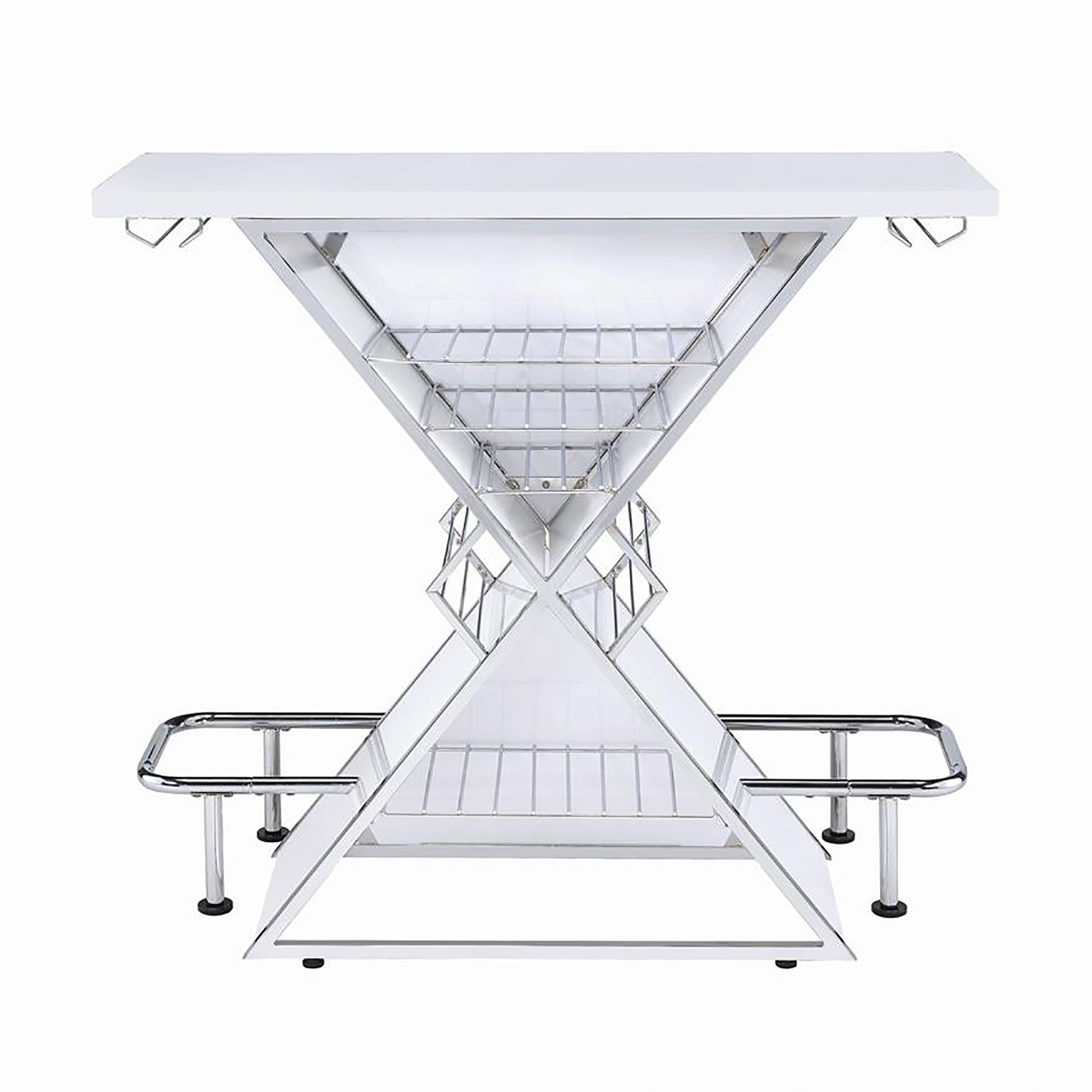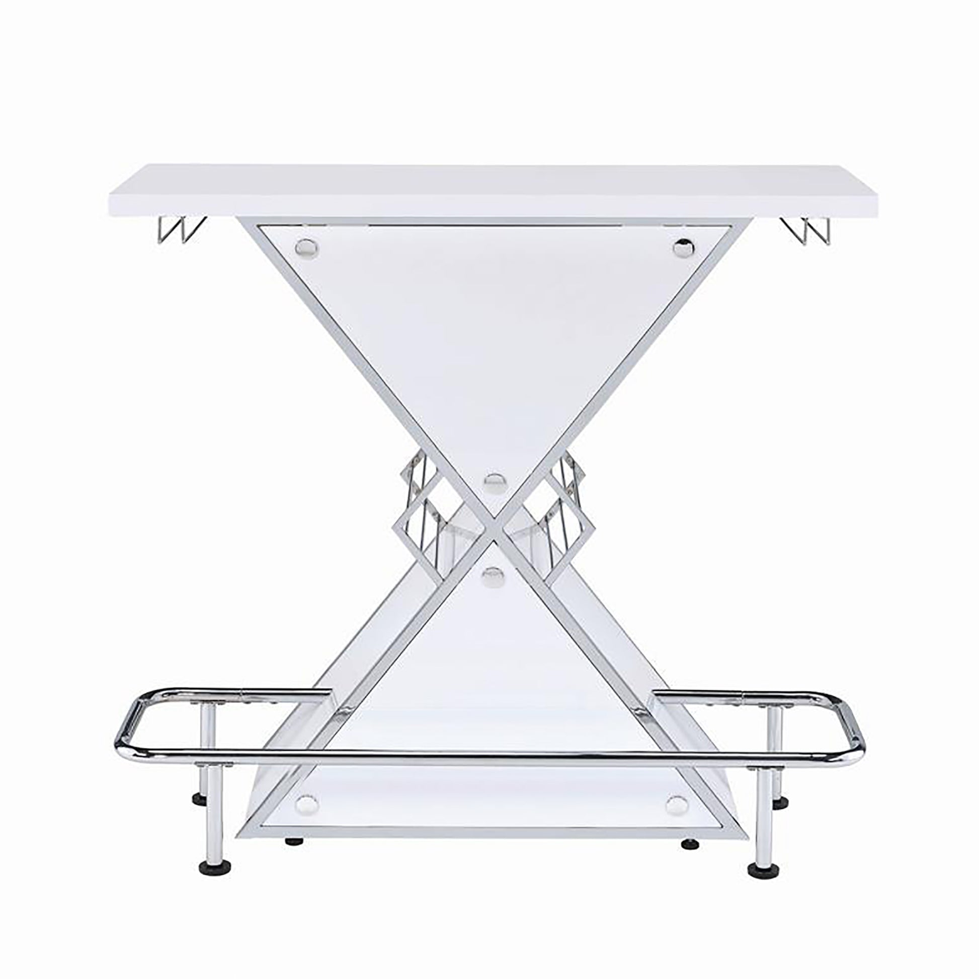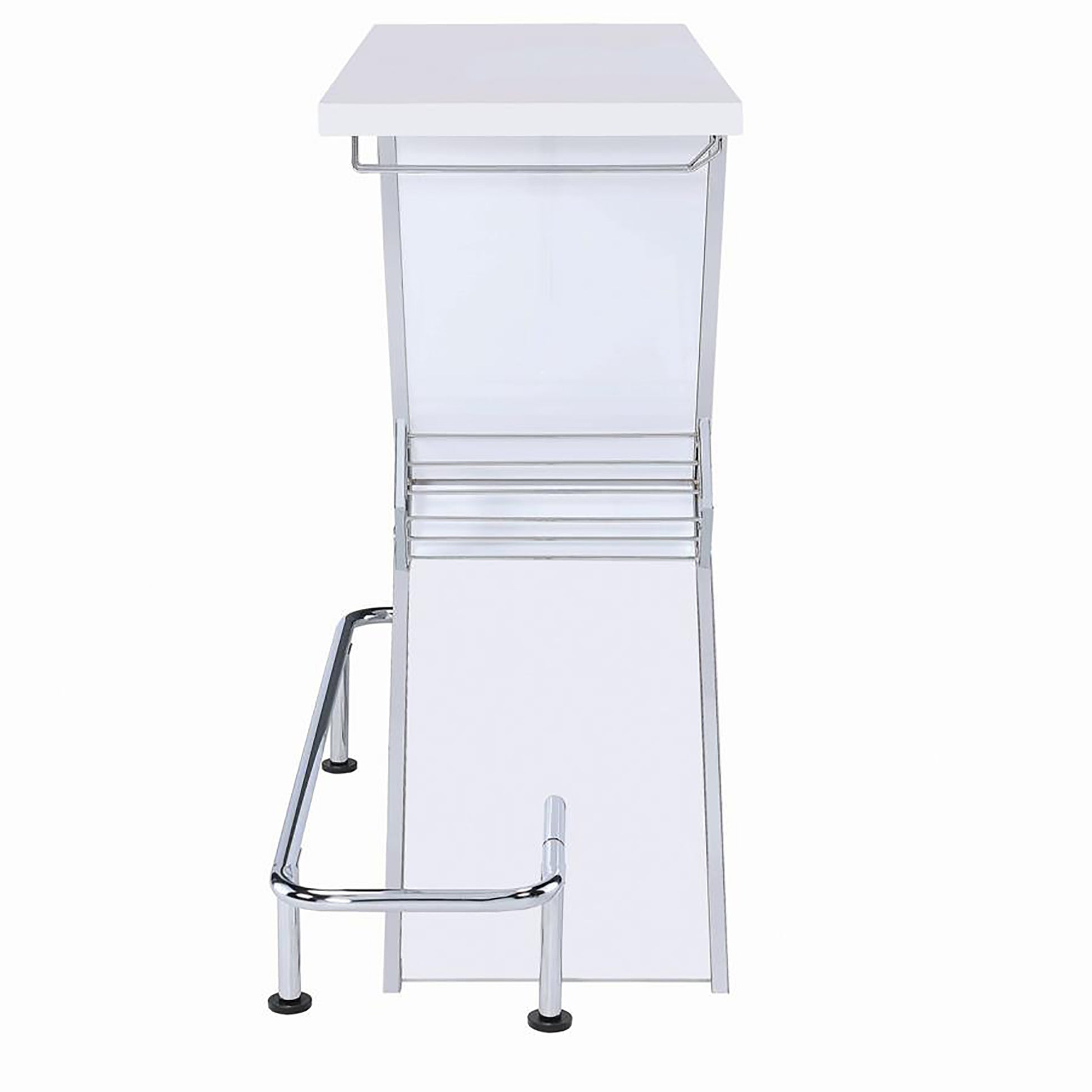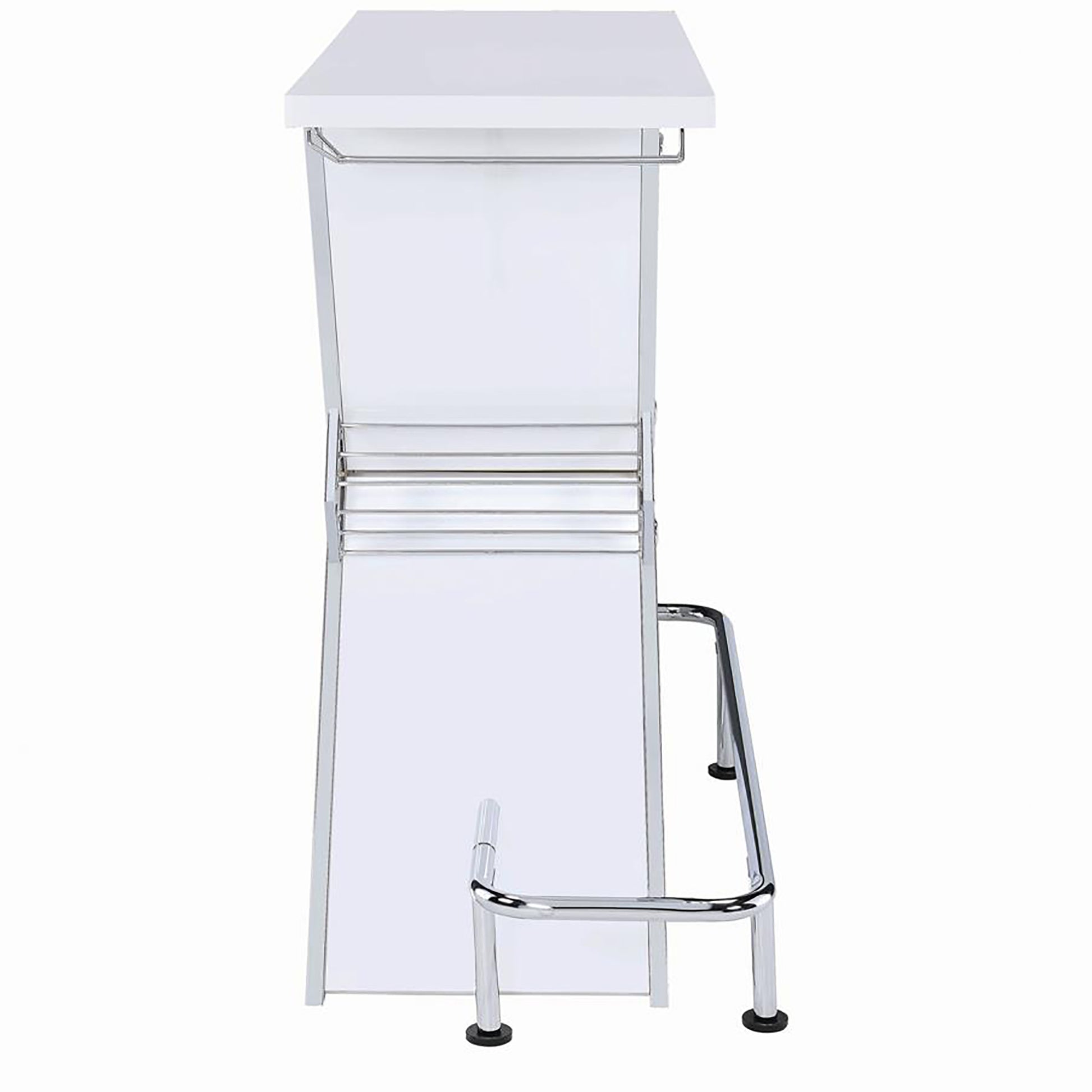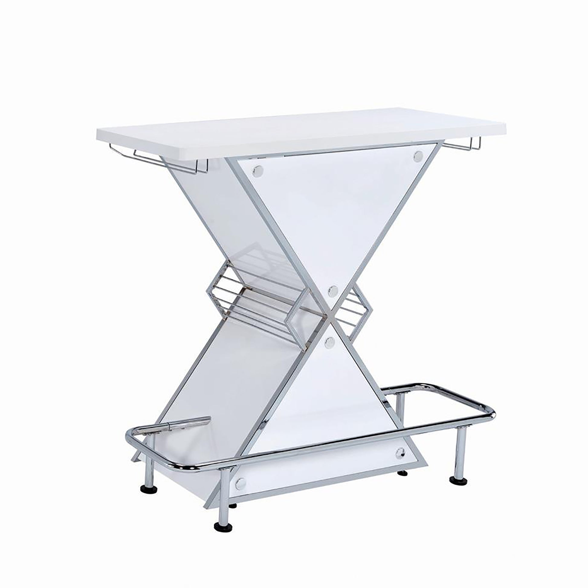 Glossy White And Chrome Bar Unit Glossy White Dining Room Contemporary,Modern Rectangular Glossy Kitchen & Dining Tables Wood Pedestal