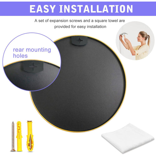 Gold 20 Inch Metal Round Bathroom Mirror Gold Classic Mdf Glass Aluminium Alloy