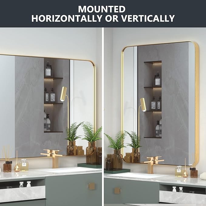Gold 24 "X36" Rectangular Bathroom Wall Mirror Gold Classic,Modern Mdf Glass Aluminium