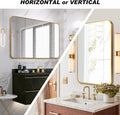 Gold 30 "X40" Rectangular Bathroom Wall Mirror Gold Classic Mdf Glass Aluminium Alloy