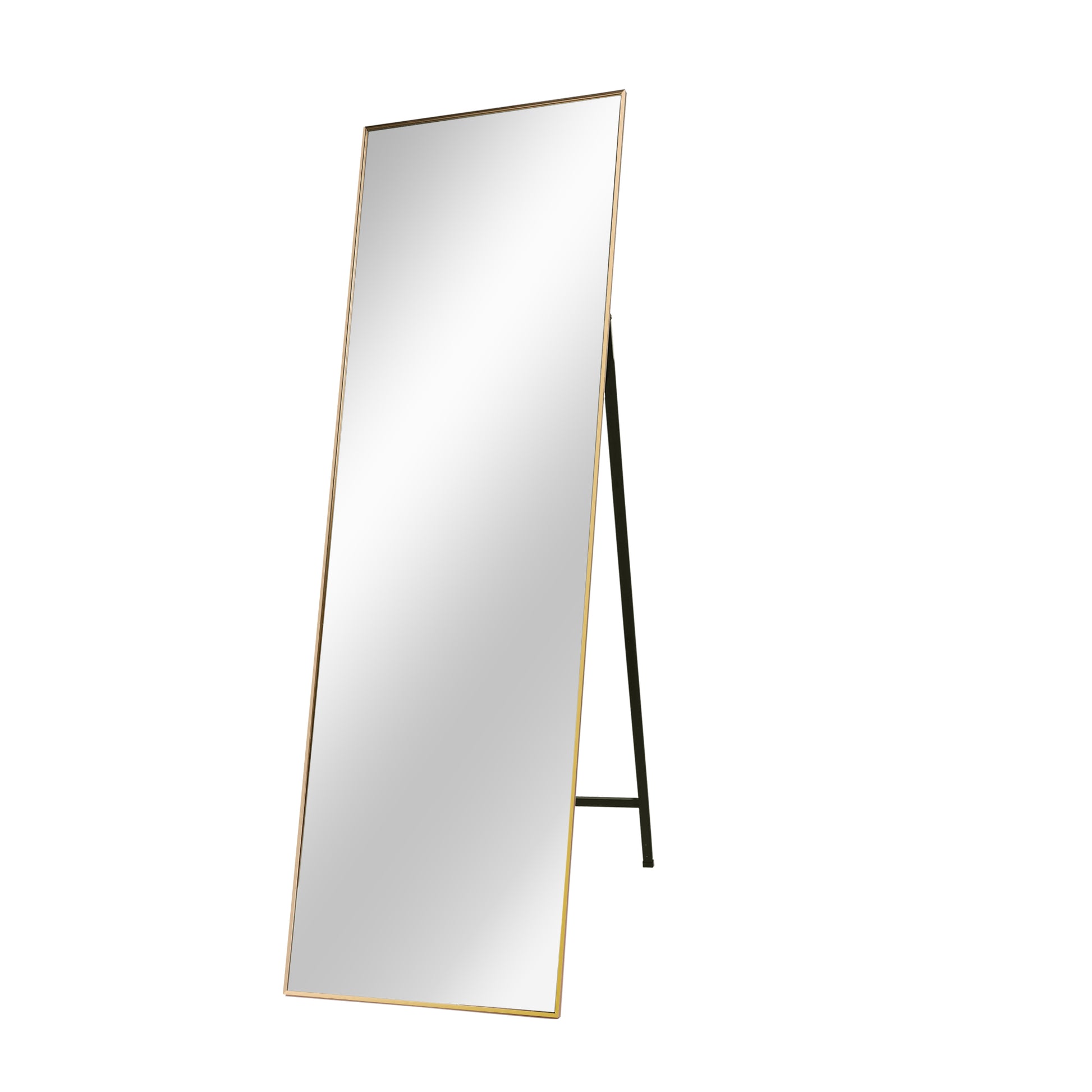 Gold 65 X 22 In Metal Stand Full Length Mirror Gold Classic Mdf Glass Aluminium