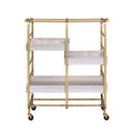 Gold And White Washed Serving Cart With 3 Adjustable Trays Gold White Dining Room Contemporary Rectangular Kitchen Carts Wood Metal