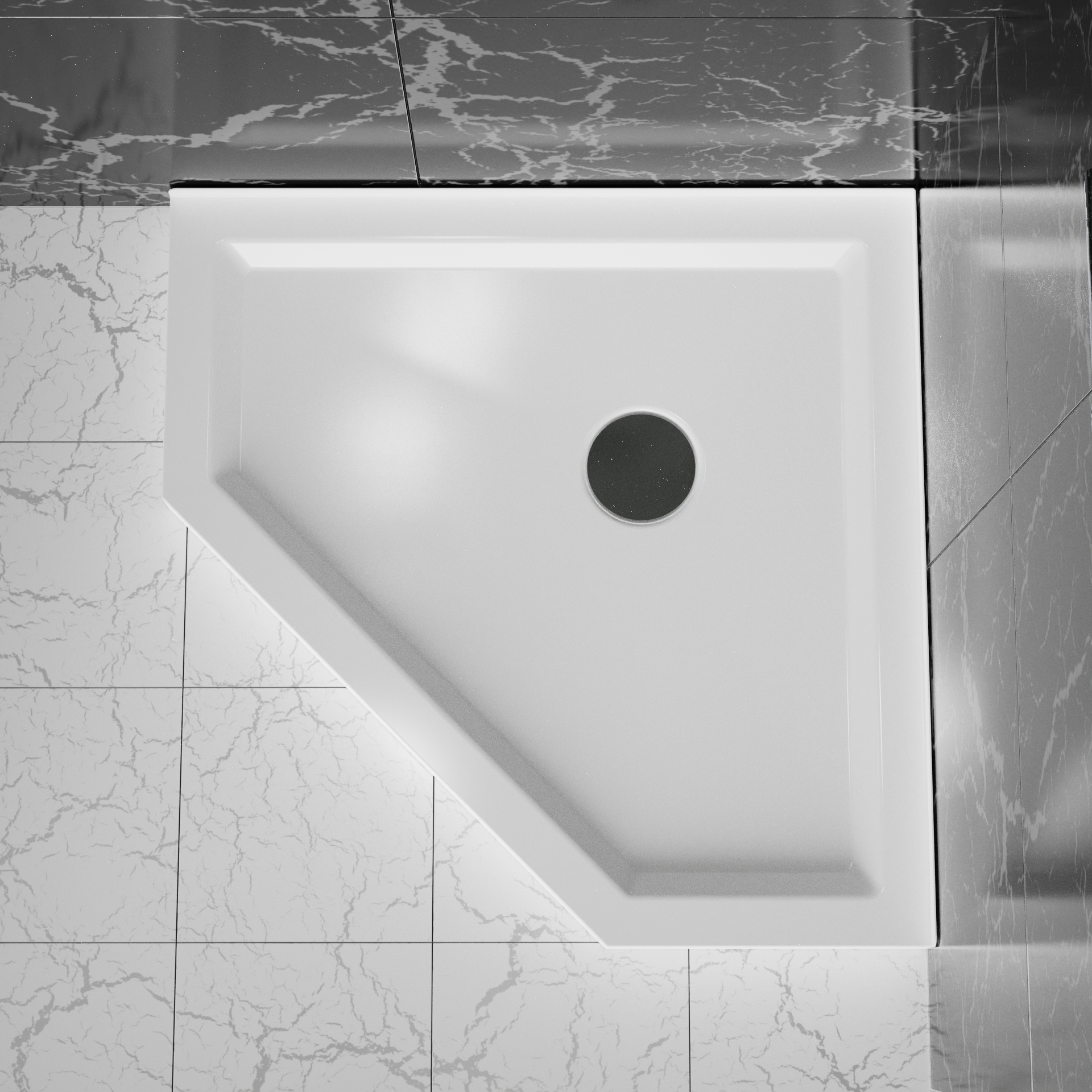 Goodyo 36"X36" Corner Drain Neo Angle Shower Base White White Abs