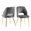 Gray Velvet Dining Chairs With Metal Legs And Hollow Back Upholstered Dining Chairs Set Of 4 Gray Dining Room Modern Dining Chairs Velvet