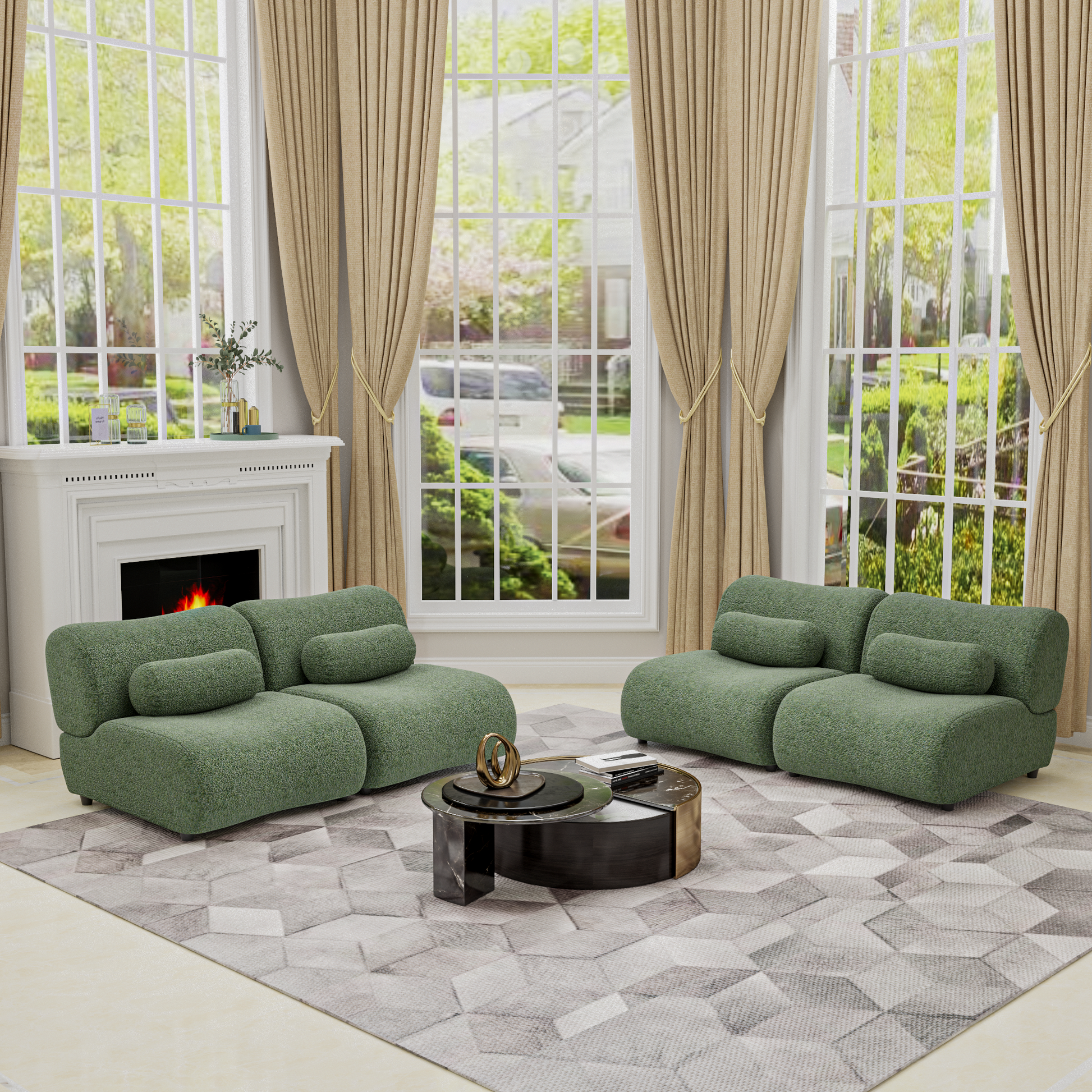 Green Modular Living Room Sofa Stylish Chenille Fabric Sofa With 70 Degree Reclined Backrest And Cylindrical Pillows, Flexible Layout, Multiple Configurations Green Chenille 4 Seat