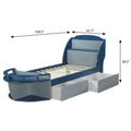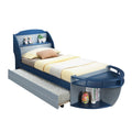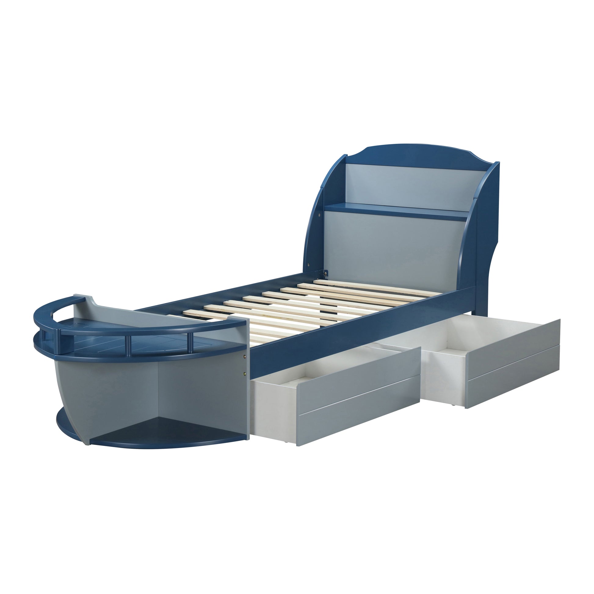 Grey And Navy Twin Bed With 2 Open Compartments Grey Blue Wood