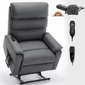 Grey Cat Proof Leather Dual Motor Infinite Position Up To 350 Lbs Power Lift Recliner Chair With Power Remote, Heat Massage And Heavy Duty Motion Mechanism White Metal Primary Living Space Heavy