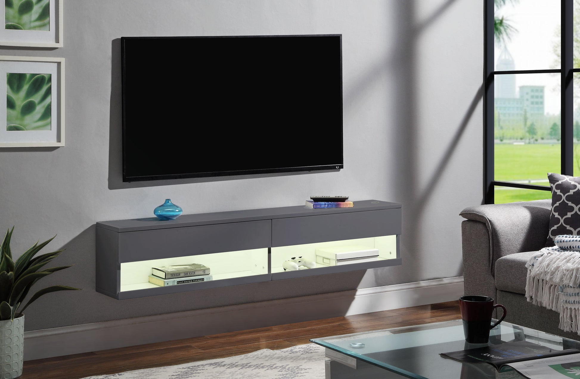 Grey Floating Tv Stand With Led Light Grey Primary Living Space 50 59 Inches Contemporary,Modern Mdf