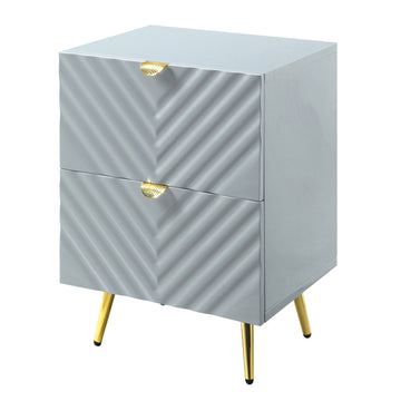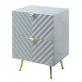 Grey High Gloss 2 Drawer Nightstand Grey 2 Drawers Bedroom Rectangle Glam Drawers Wood Metal