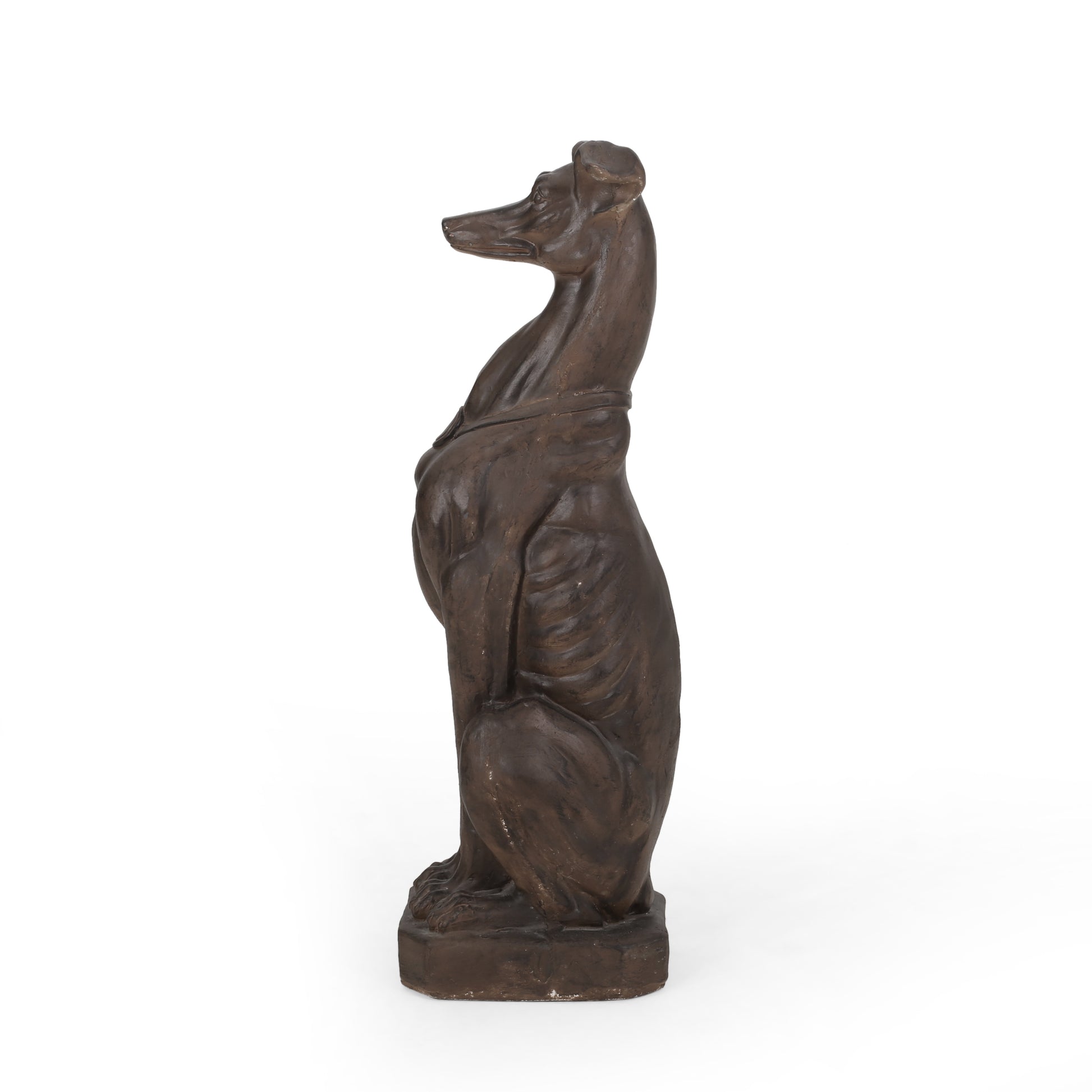 Grey Hound Dog Statue Dark Brown Magnesium Oxide