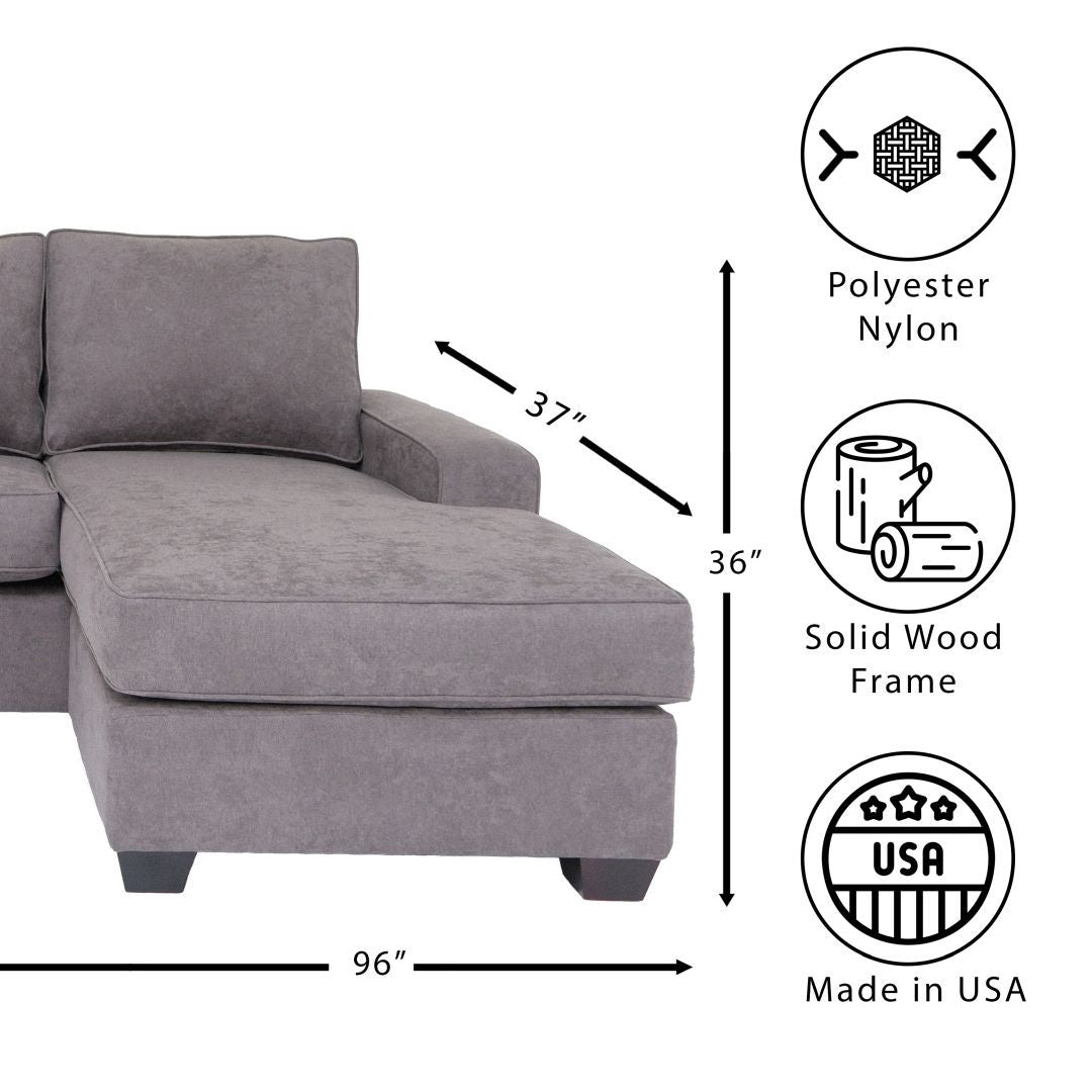 Grey L Shaped Sectional Sofas For Living Room, Modern Reversible Sectional Couches For Bedrooms, Apartment With Solid Wood Frame Polyester Nylon Grey Wood Foam Polyester