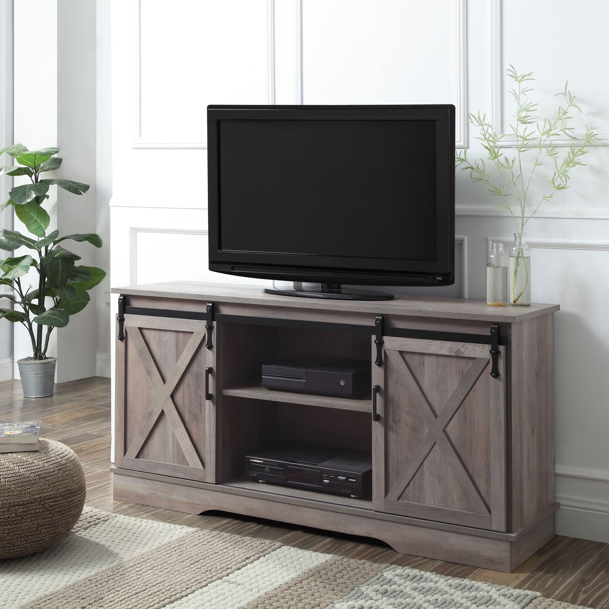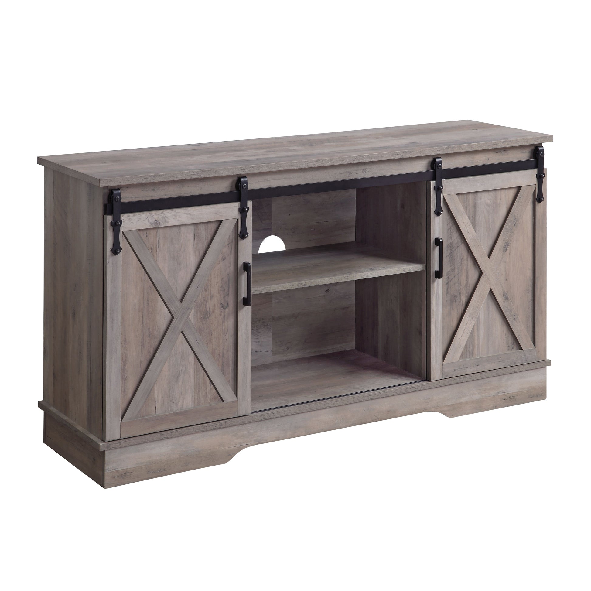 Grey Tv Stand With 2 Sliding Barn Doors Grey Primary Living Space 60 69 Inches Rustic Wood Metal
