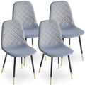 Grey Velvet Tufted Accent Chairs With Golden Color Metal Legs, Modern Dining Chairs For Living Room,Set Of 4 Metal Plaid Grey Dining Room Powder Coated Foam Dry Clean Modern Dining Chairs Solid Back