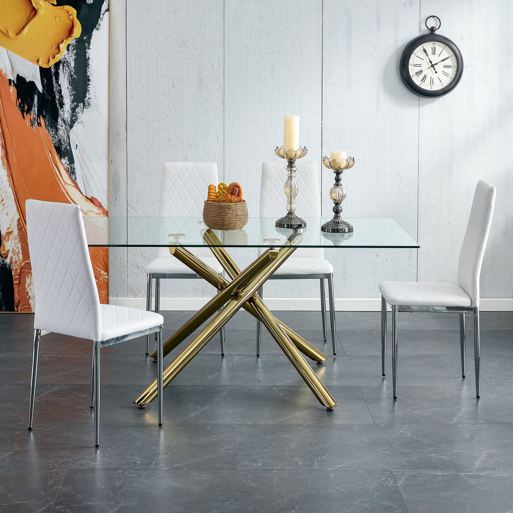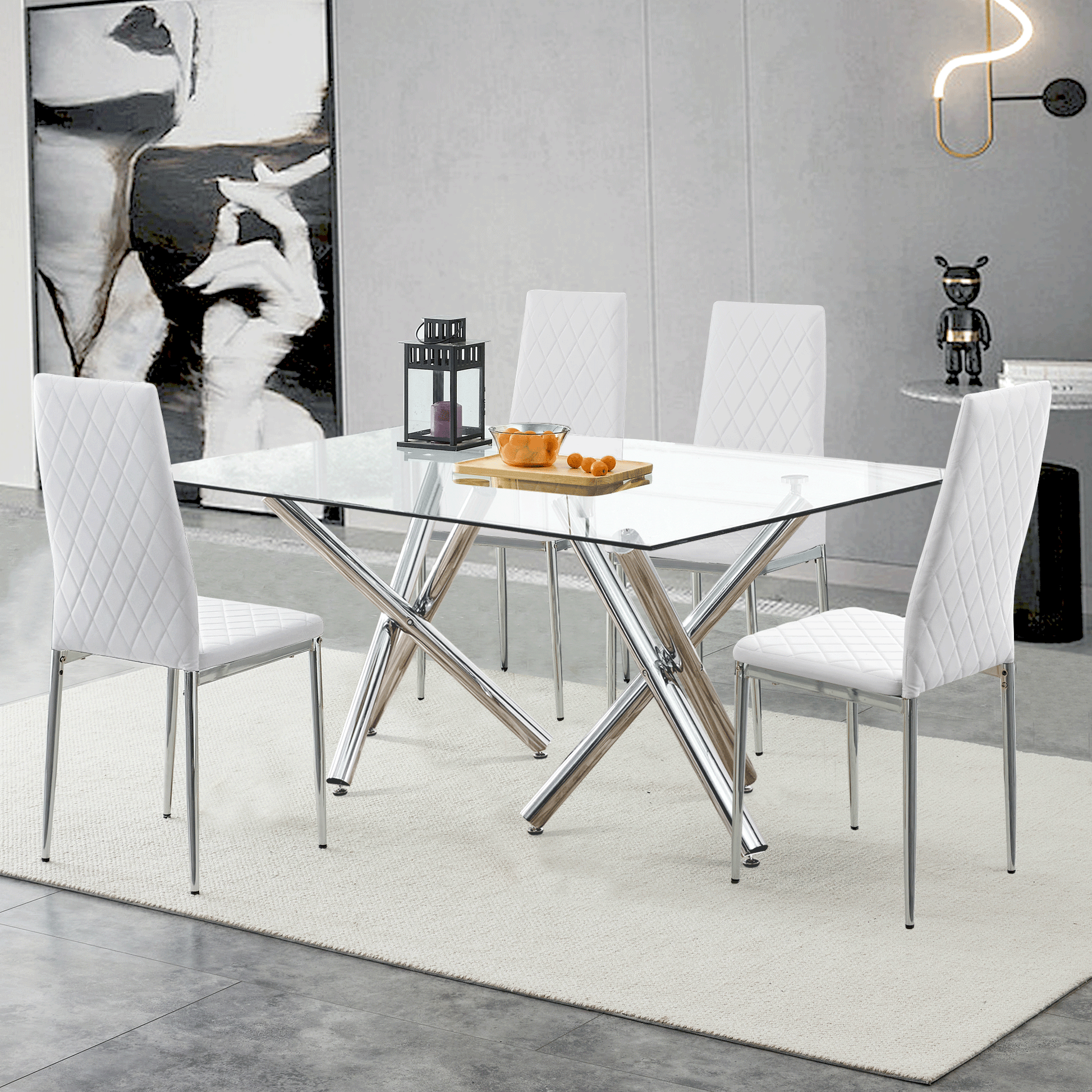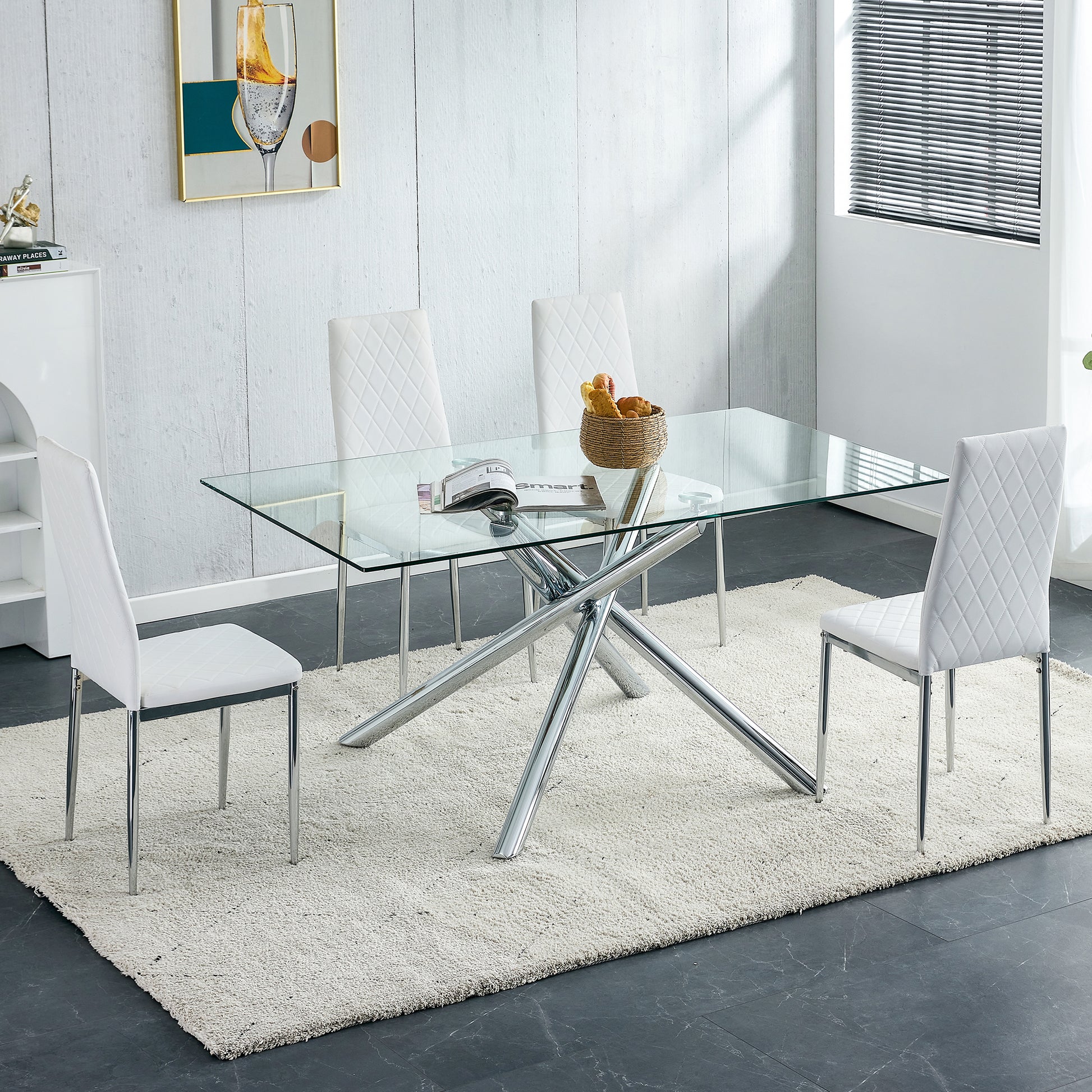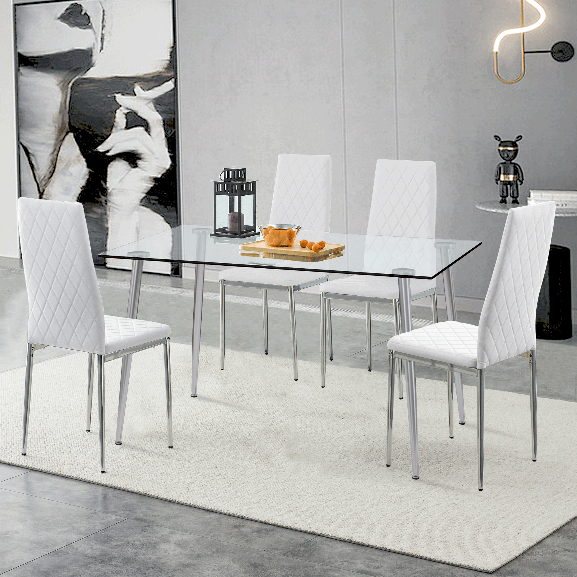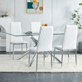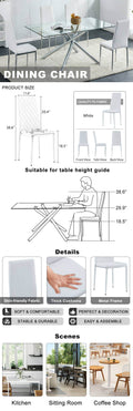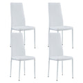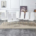 Grid Armless High Backrest Dining Chair, 8 Piece Set Of Silver Metal Legs White Chair, Office Chair. Suitable For Restaurants, Living Rooms, Kitchens, And Offices. 0924 White Pu