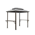 Grill Gazebo 8' 6', Aluminum Bbq Gazebo Outdoor Metal Frame With Shelves Serving Tables, Permanent Double Roof Hard Top Gazebos For Patio Lawn Deck Backyard And Garden Brown Brown Metal