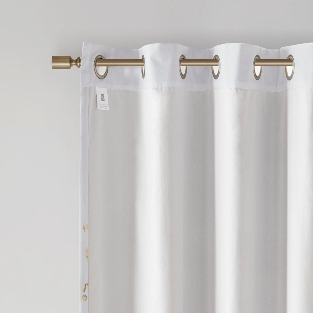 Grommet Top Metallic Animal Printed Total Blackout Curtain Only 1 Pc Panel White Gold Polyester