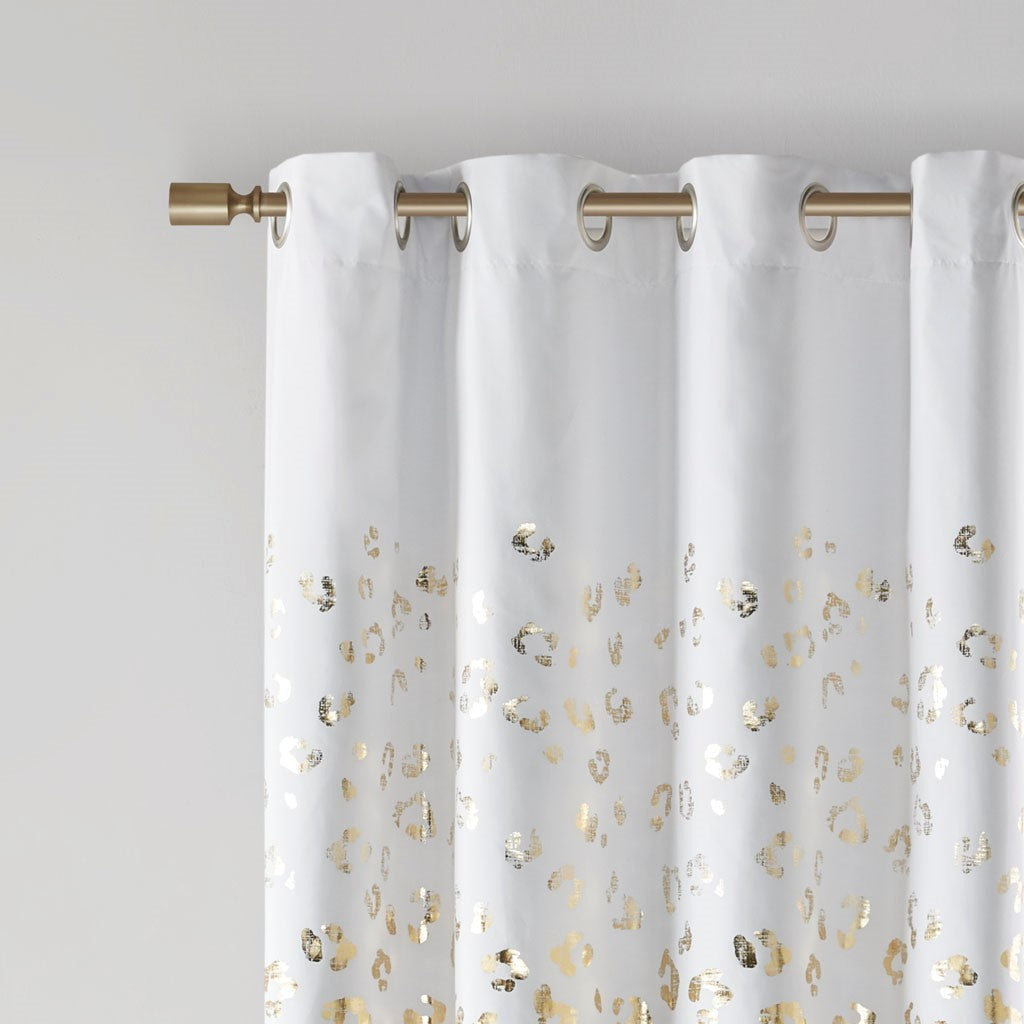 Grommet Top Metallic Animal Printed Total Blackout Curtain Only 1 Pc Panel White Gold Polyester