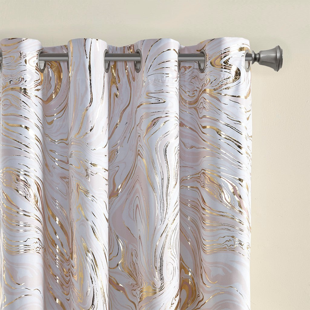 Grommet Top Printed Marble Metallic Total Blackout Curtain Only 1 Pc Panel Blush Gold Polyester