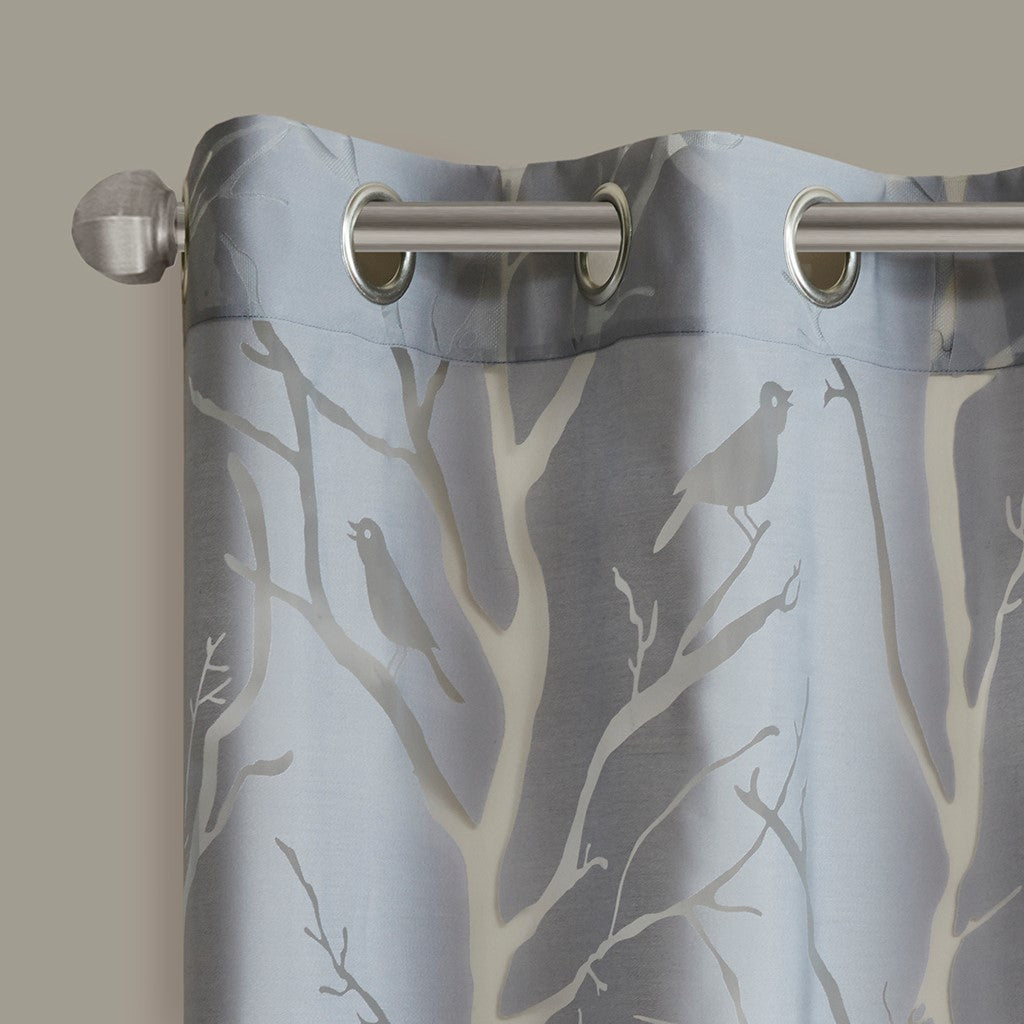 Grommet Top Sheer Bird On Branches Burnout Window Curtain Only 1 Pc Panel Grey Polyester