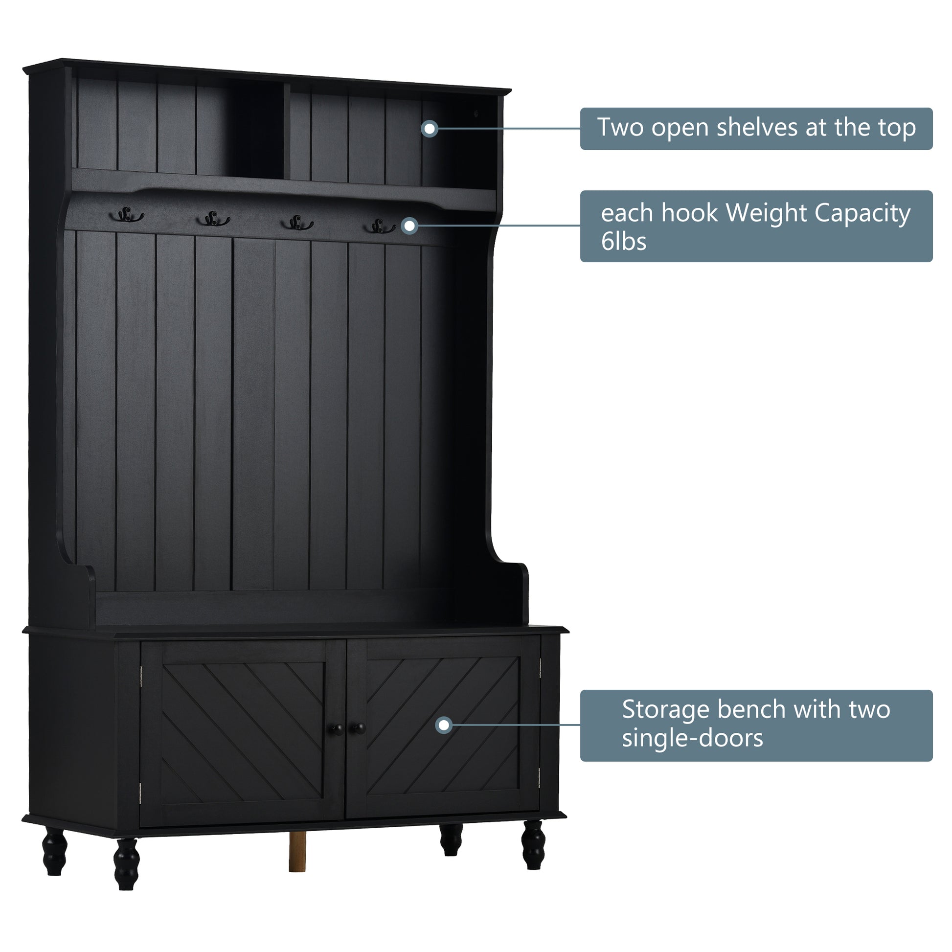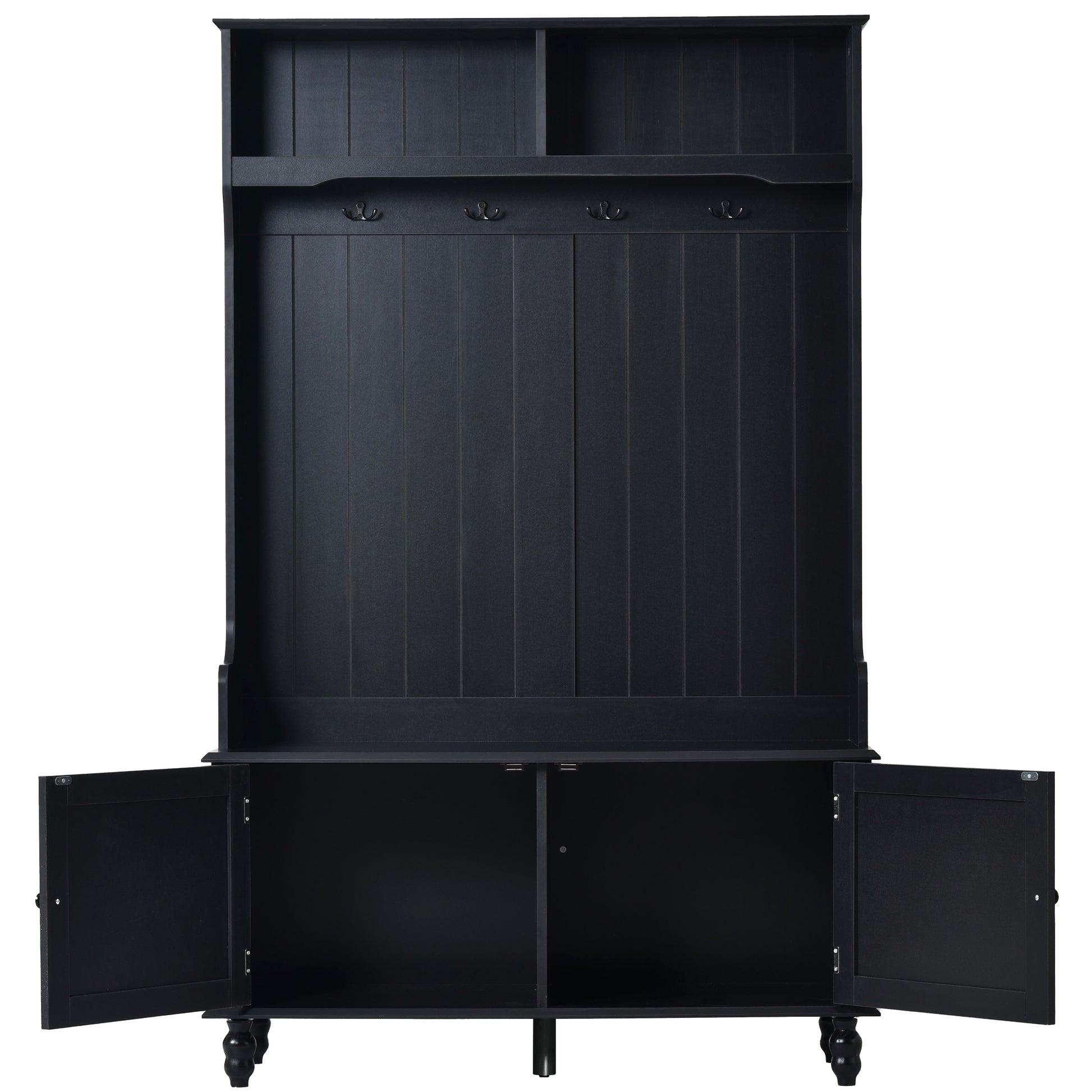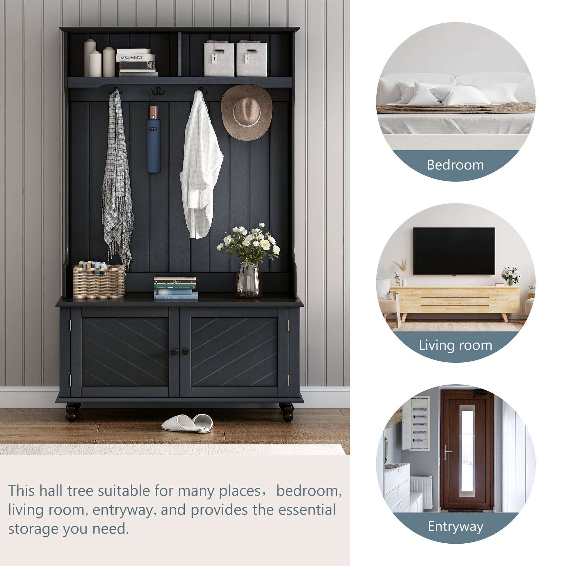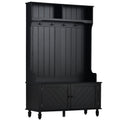 Hall Tree With 4 Hookscoat Hanger, Entryway Bench, Storage Bench, 3 In 1 Design, 40Inch, For Entrance, Hallway Black Black Particle Board