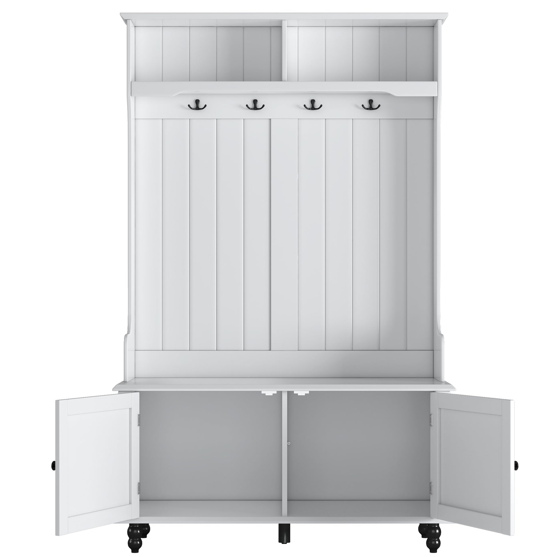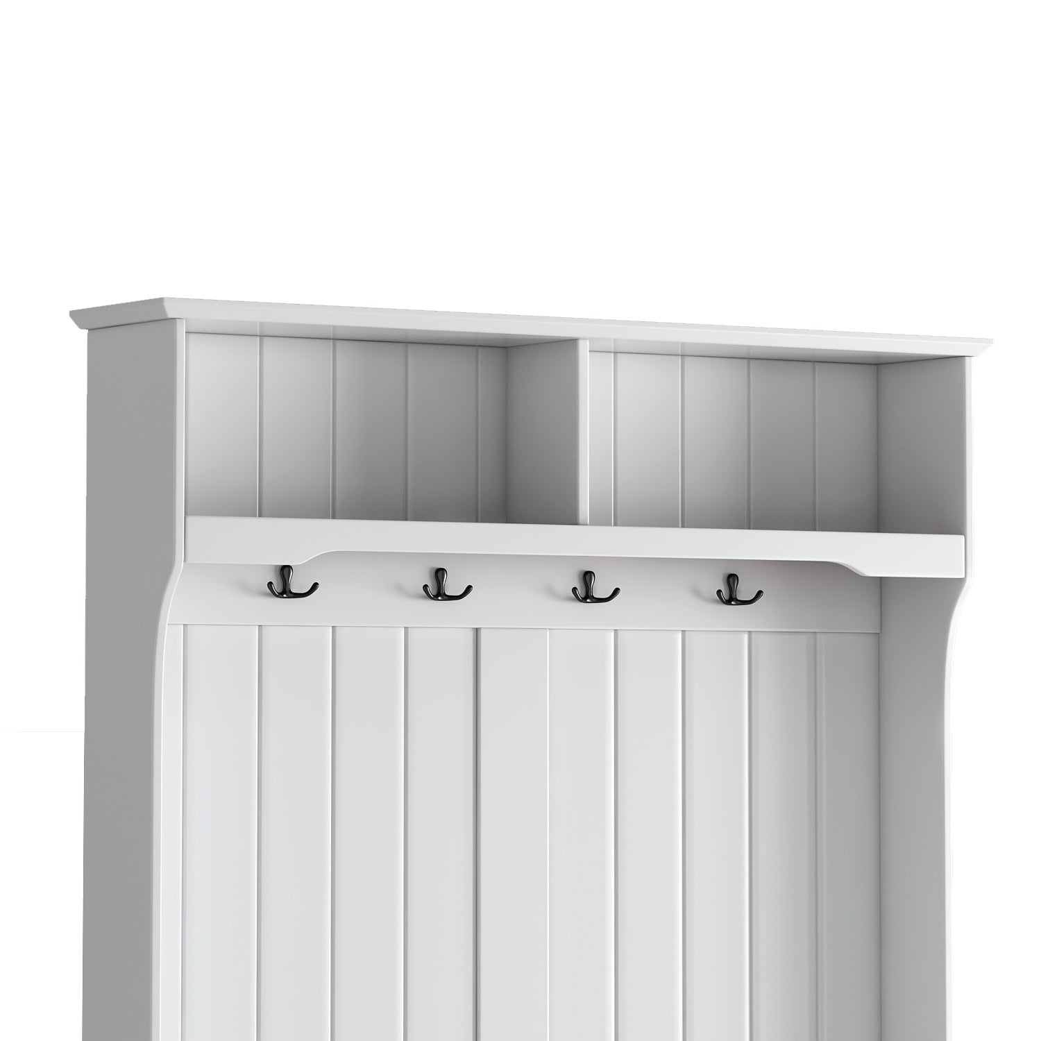 Hall Tree With 4 Hookscoat Hanger, Entryway Bench, Storage Bench, 3 In 1 Design, 40Inch, For Entrance, Hallway White White Particle Board