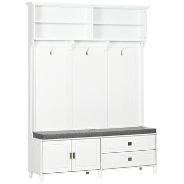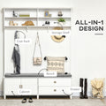 Hall Tree With Storage Bench, Entryway Bench With Coat Rack, Accent Coat Tree With Storage Shelves, Cabinet And Drawers For Hallway, Mudroom, White White Mdf