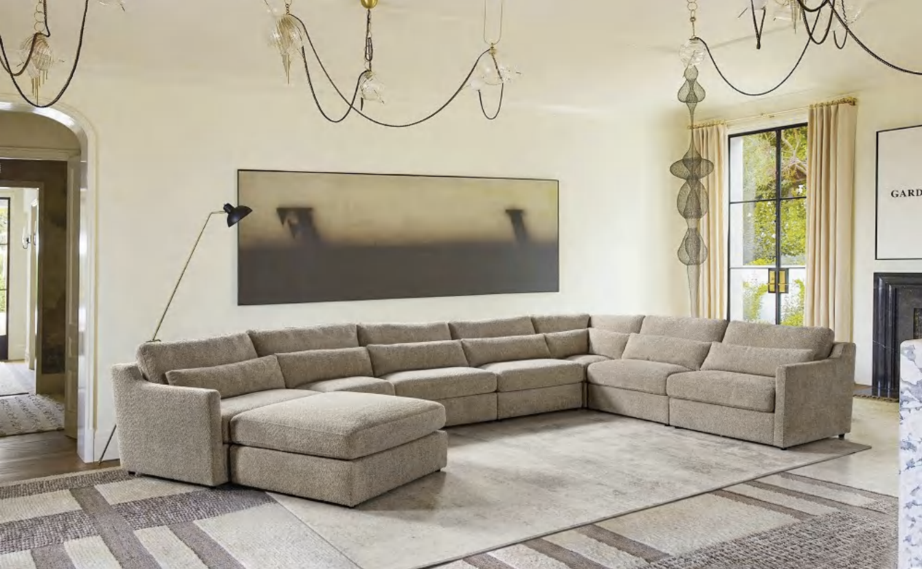 Hampshire Unbleached Linen Modular 7 Piece Sectional Beige Wood Linen