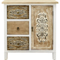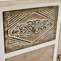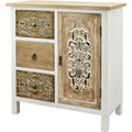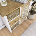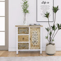 Hand Carved Accent Cabinet With Vintage Charm Versatile Storage And Distinctive Design Fully Assembled 3 4 Drawers White Washed Primary Living Space Shelves Included Wood