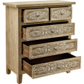 Hand Carved Accent Drawer With 5 Drawers Traditional Craftsman And Functionality Combined Antique Brown Wood
