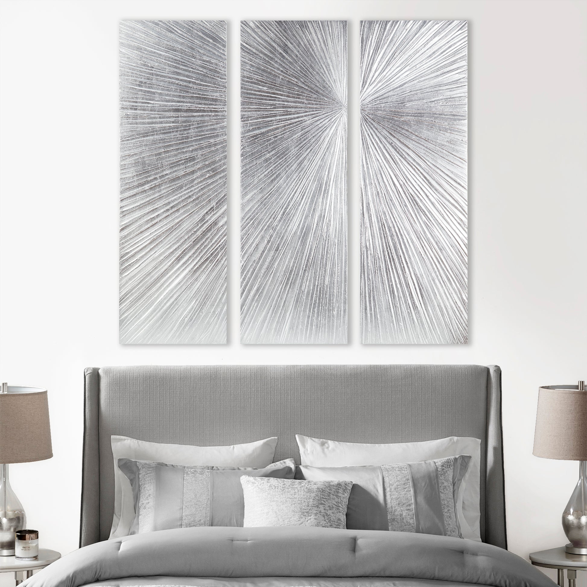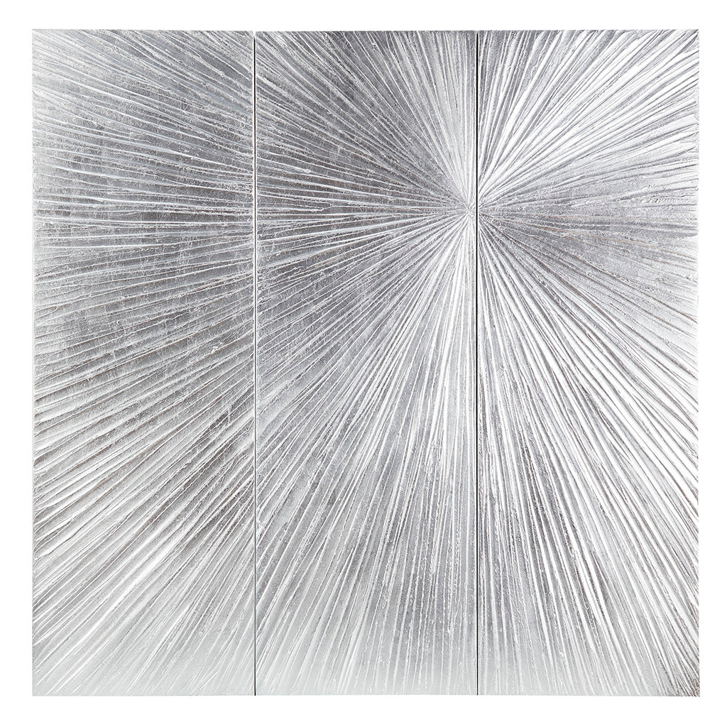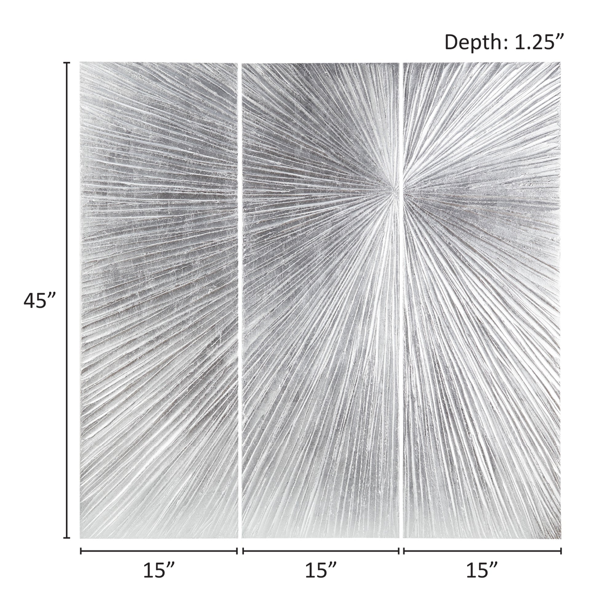 Hand Painted Triptych 3 Piece Dimensional Resin Wall Art Set Silver Mdf