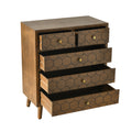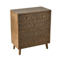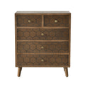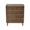 Handcrafted Accent Drawer With Abstract Carvings Premium Mdf Construction 5 Drawers For Stylish Storage Natural Wood Veneer Accent Chests 5 Or More Drawers Antique Brown Primary Living Space Drawers